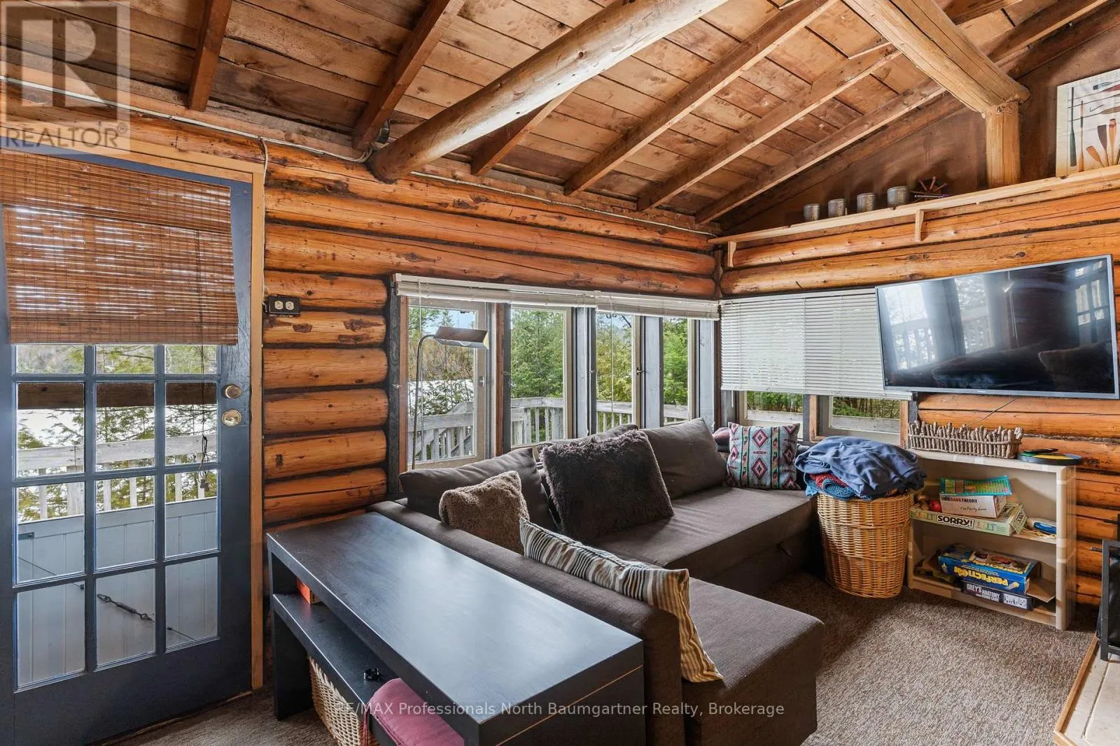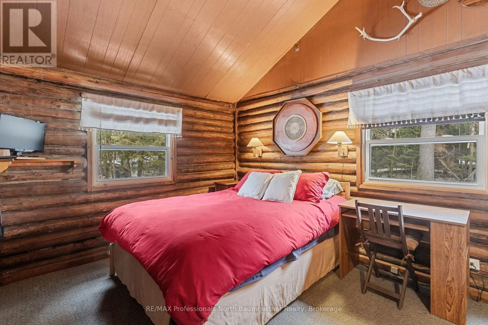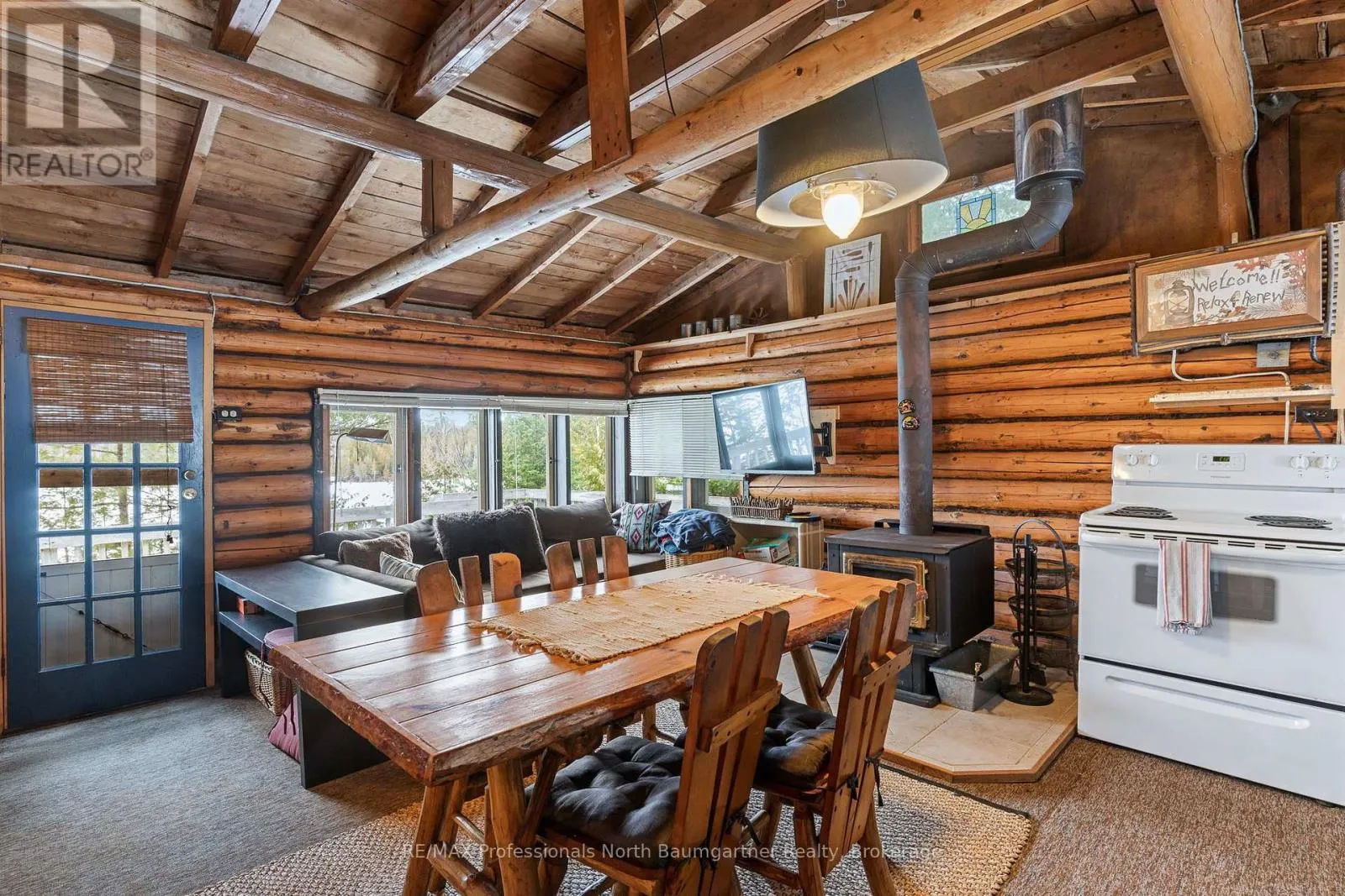 Welcome to this beautifully maintained waterfront retreat on Gooderham Lake, featuring two charming log buildings that capture the ultimate cottage lifestyle. The main 4-season home radiates warmth and charm with its open-concept design, pine ceilings, and a striking stone fireplace. With 2+1 bedrooms and a full bathroom, there’s plenty of space for family and guests, while the recreation room walkout