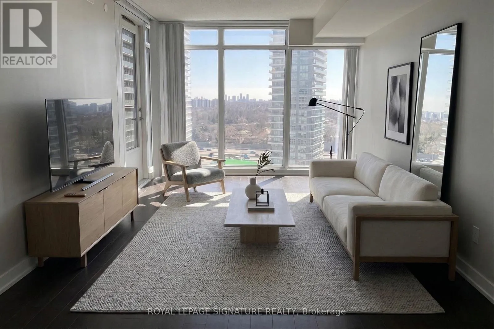 Modern 1+Den suite at Tango 2 Condos featuring a sleek kitchen, spacious layout, and private balcony with stunning south-facing city and lake views. Includes large ensuite storage for added convenience. Ideally located steps to Leslie Station and minutes to Hwy 401. Situated in the desirable Bayview Village community, close to IKEA North York, Bayview Village Shopping Centre, North York General