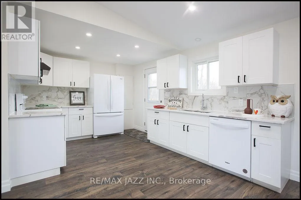 Waterfront 4-Season, 3 Bedroom Bungalow; Professionally Renovated Top to Bottom. Featuring Gourmet Kitchen with Silestone Countertops. All new appliances, open concept Great room with cathedral ceiling, plank flooring, abundance of pot lights and beautifully renovated bathroom. Outside, the charm continues. Set against a park-like backdrop, the property features a 2-tier deck and direct water access. Imagine mornings by the water