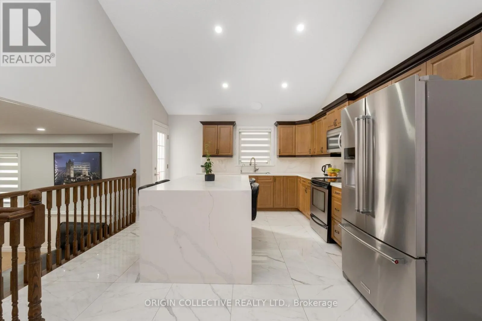 This beautifully maintained back-split home on one of Dundalk’s most sought-after streets offers a bright, functional layout ideal for everyday living and multi-generational families. The modern kitchen features vaulted ceilings, pot lights, quartz countertops, and a spacious chef’s island, with a convenient walk-through to the garage for easy grocery access. The open-concept family and dining area is warm and inviting,