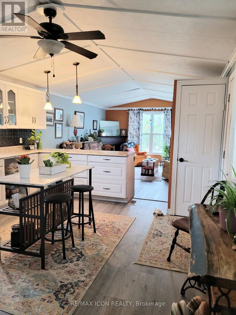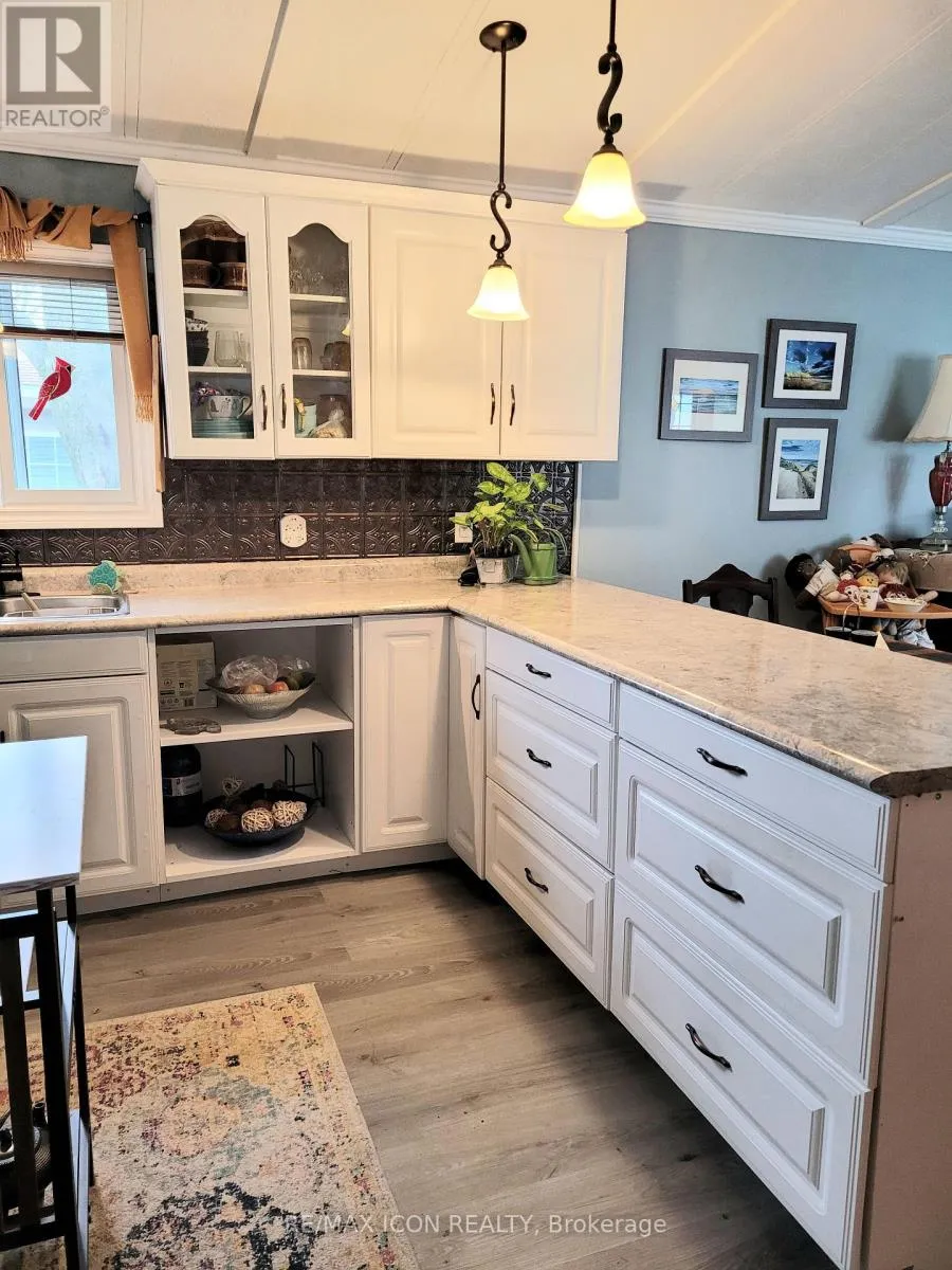 Well-maintained, year round, 70 ft. mobile home in a quiet, mobile home park just minutes south of Grand Bend. Ideal for 50 plus and retirees. Close to the great beaches of Lake Huron, several public golf courses and the Pinery Provincial Park. Open concept kitchen/living room with corner gas fireplace, vaulted ceilings, crown molding, and laminate flooring. Family room addition