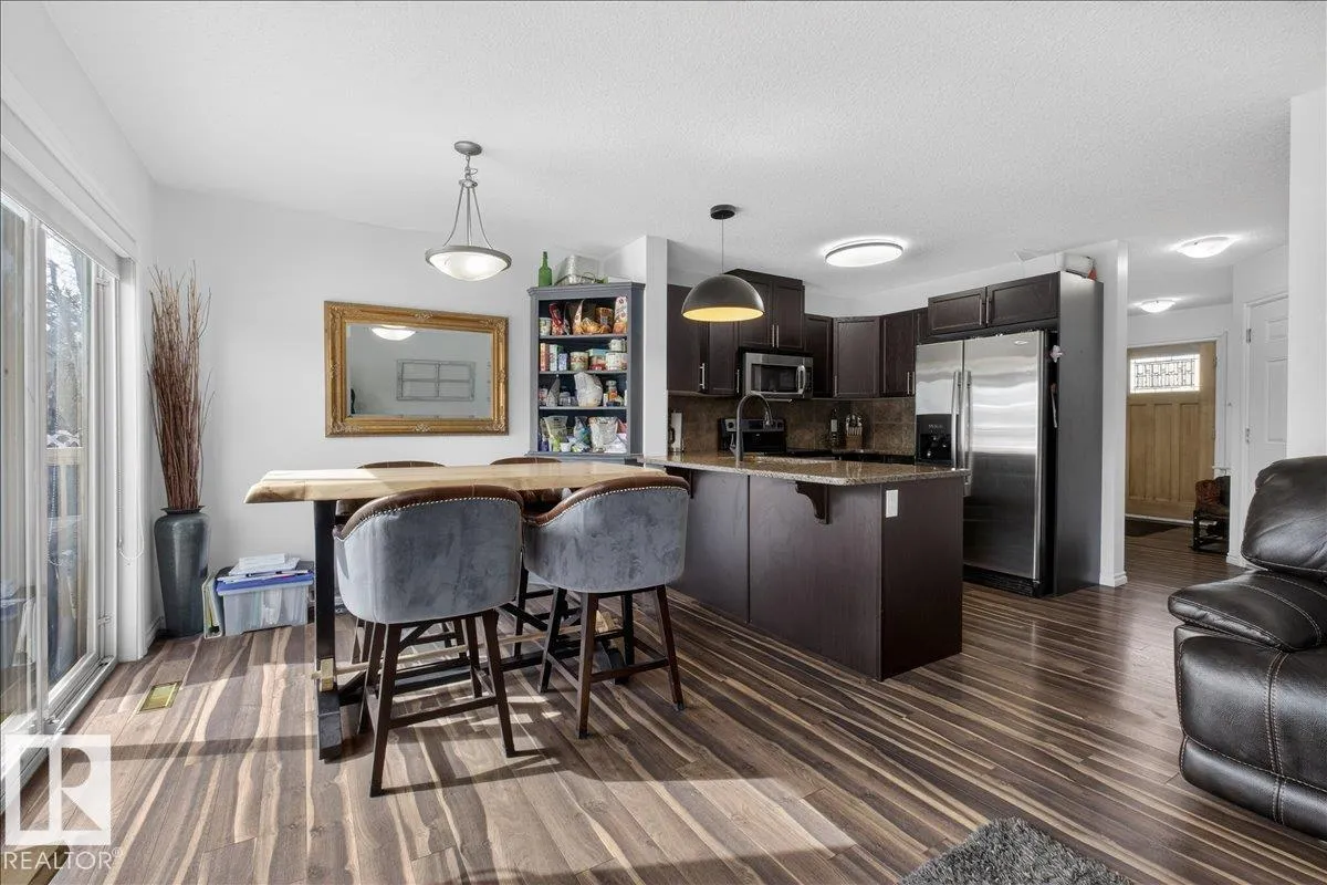 Welcome to Creekside Ravines! This beautifully designed 2-storey townhouse offers a perfect blend of comfort and functionality. Featuring a single attached garage and an open-concept main floor, you’ll love the spacious kitchen with ample cabinetry, breakfast bar, and seamless flow into the dining area and bright living room with a cozy gas fireplace. Large windows fill the space with natural