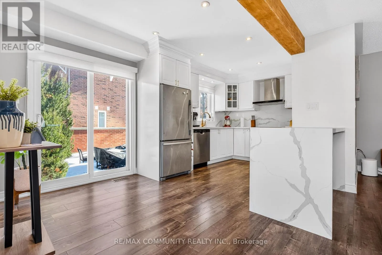 Upgrades, upgrades, upgrades! Renovated, bright & spacious corner unit that feels like a semi in sought-after East Credit. Updated top to bottom with custom finishes and quality workmanship. Showpiece kitchen with Calacatta quartz, waterfall island and matching backsplash, open to a sun-filled living/dining area. Modern flooring throughout, plus a finished basement with wet bar, extra living space, full bath +