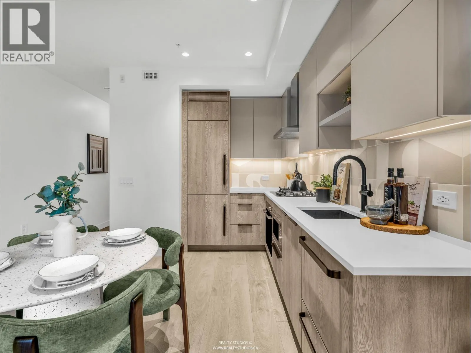 Welcome to E15, a contemporary townhouse-style home on a quiet residential street in the heart of Mount Pleasant. Built in 2024, covered under 2-5-10 warranty, this thoughtfully designed residence offers modern living with a functional layout and clean, refined finishes throughout. The sleek kitchen features stainless steel Fisher & Paykel appliances, including a cooktop and oven, an integrated fridge/freezer
