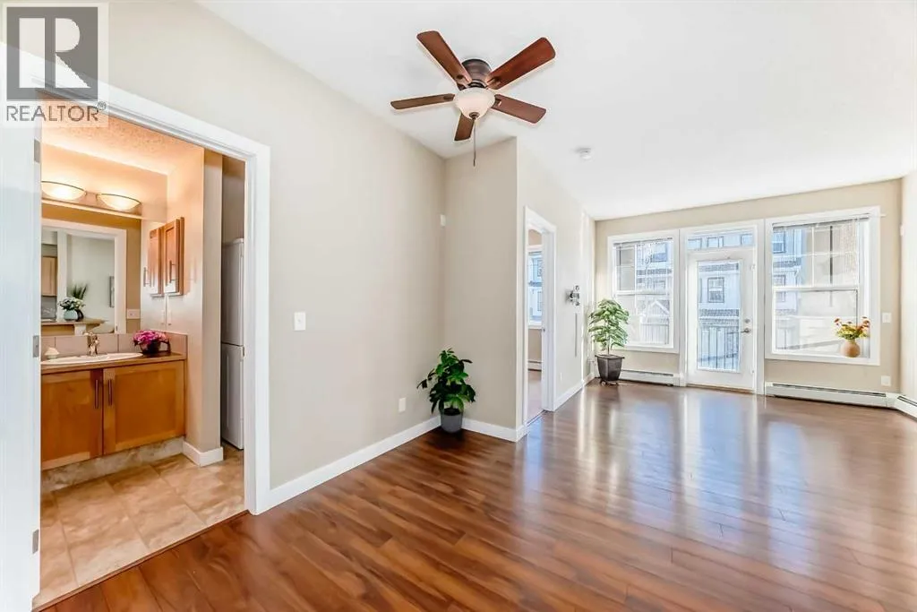 Excellent opportunity for comfortable living or investment. This well-maintained 2-bedroom, 2-bathroom corner unit is located in a quiet, modern building in the highly desirable Panorama Hills community. It includes a titled heated underground parking stall with an adjacent storage locker, offering both convenience and value. The bright open-concept living, dining, and kitchen area features 9-foot ceilings, creating a spacious and