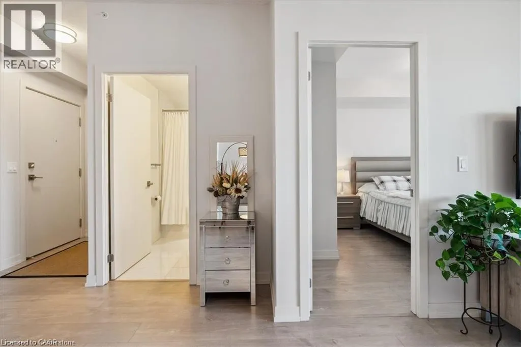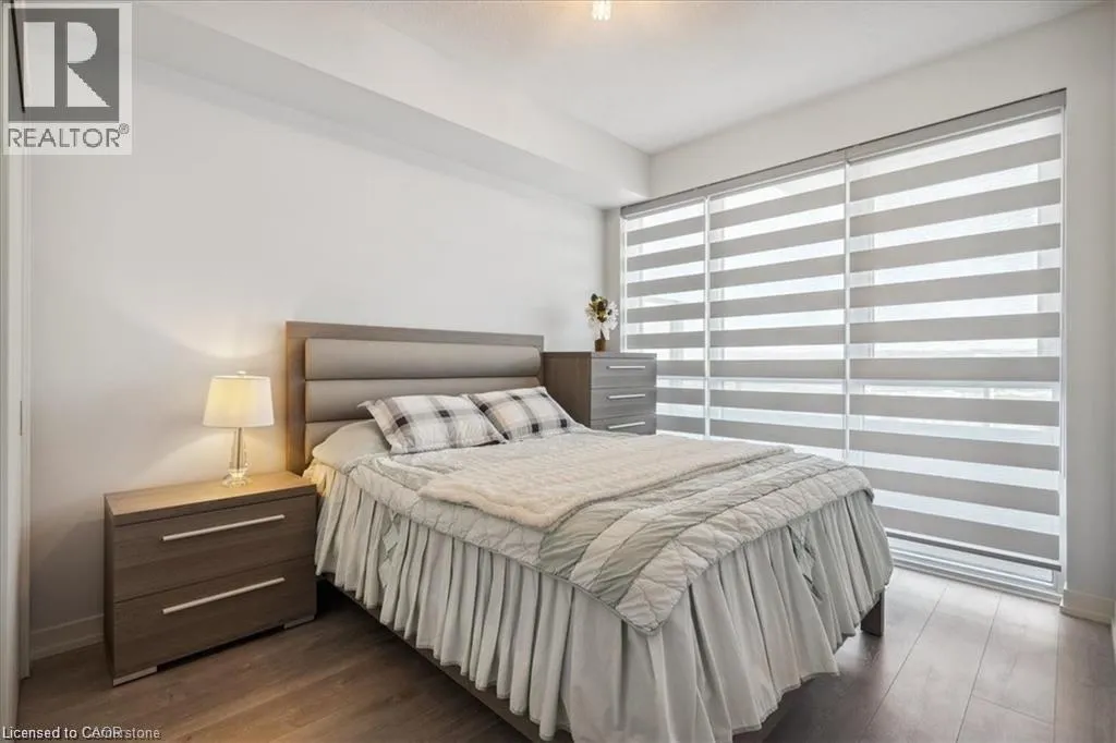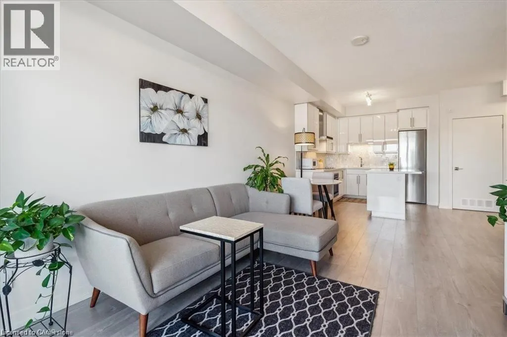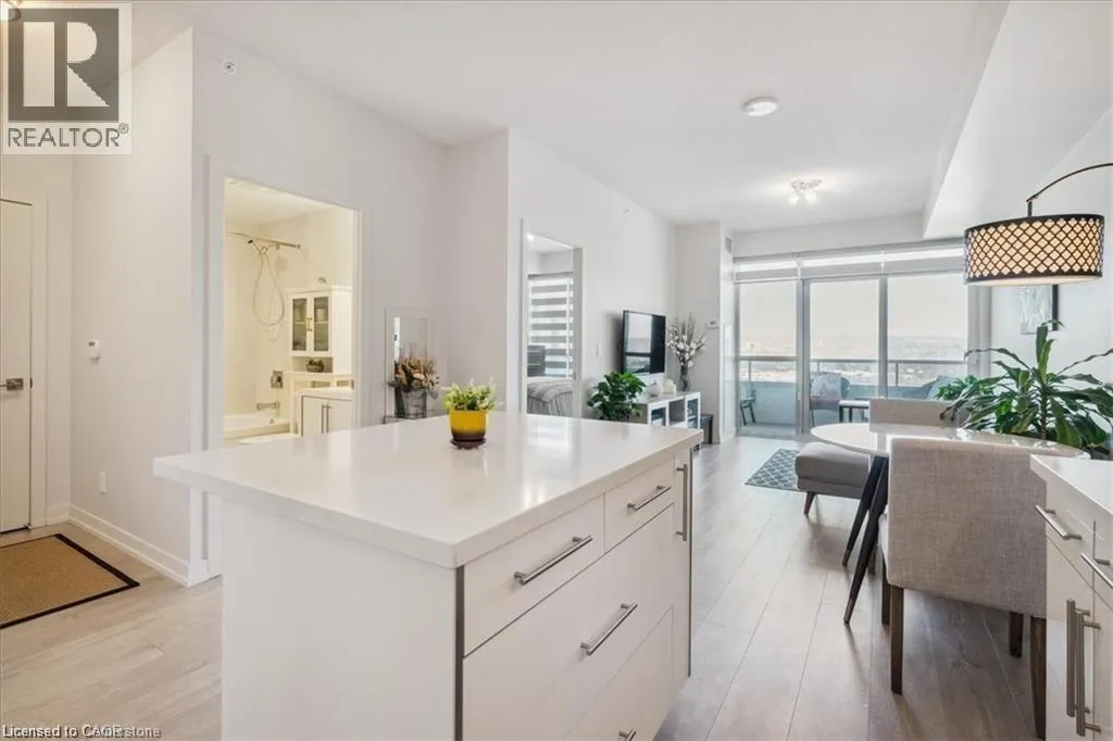 Welcome to Paradigm condos. This building and location is perfect for commuters and is outfitted with stainless steel appliances, upgraded cabinetry, quartz counters, and a stylish backsplash, and custom window treatments. The island with a breakfast bar overlooks the living room, and great views of the Escarpment. The living room has access to an oversized balcony that extends your living