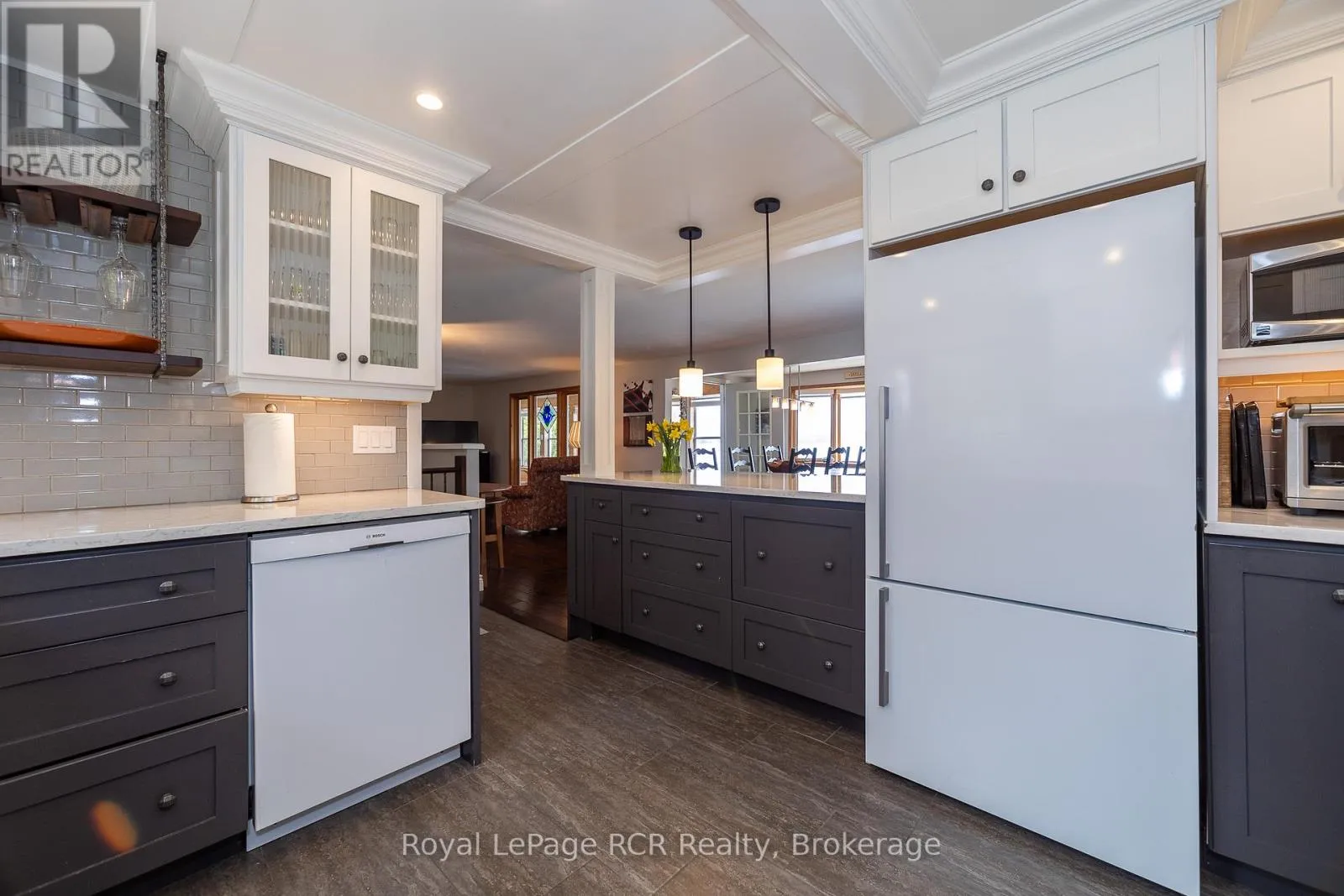 123′ waterfront on Sunset Point, Lake Eugenia with unobstructed views from nearly every room on both levels. Enjoy the open kitchen, dining and living areas with direct access to the light-filled sunroom. Lower level walkout features a family room with propane free-standing stove, second kitchen, 2nd bath and great coat room with access to the attached garage. Walkout to stone
