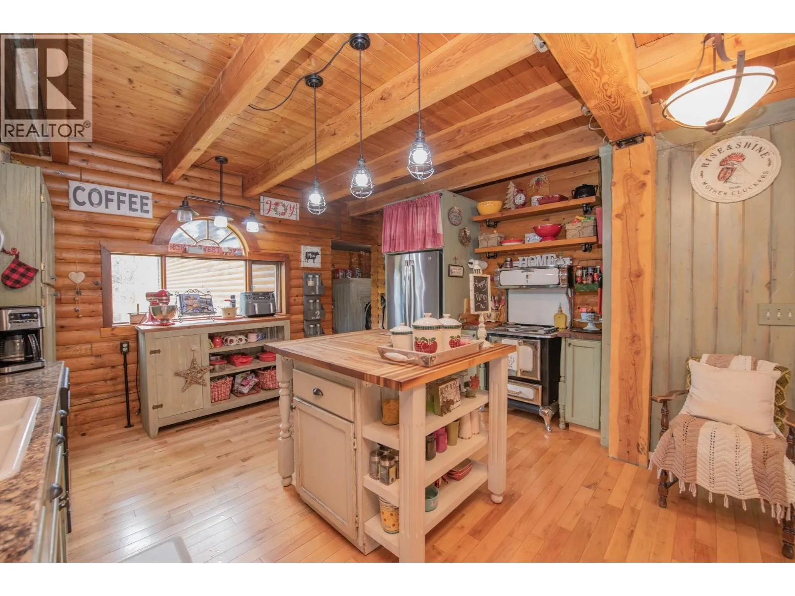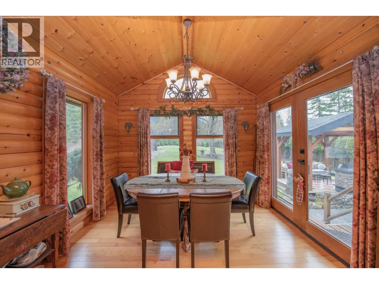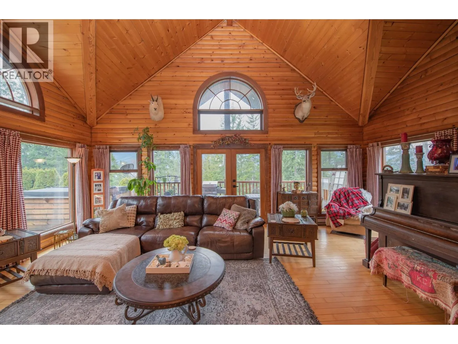 Offered for the first time on the market, this stunning custom-built log home perfectly balances privacy, space, and convenience, making it an exceptional opportunity for buyers seeking both serenity and accessibility. Nestled on a beautifully maintained property just minutes from town, this home invites you to enjoy peaceful living without sacrificing proximity to everyday amenities. Inside, soaring vaulted ceilings and