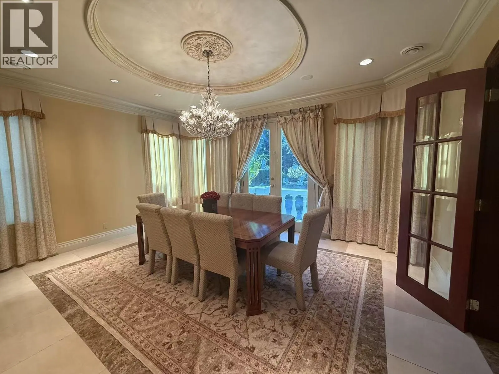A stunning British Properties estate on a private half-acre with a tennis court, offering nearly 8,000 sq.ft. of luxury across three levels. This custom-built home features polished marble, rich hardwood flooring, and elegant millwork throughout. A grand marble foyer leads to spacious formal living and dining areas, along with a gourmet kitchen and separate Chinese wok kitchen. The eating area