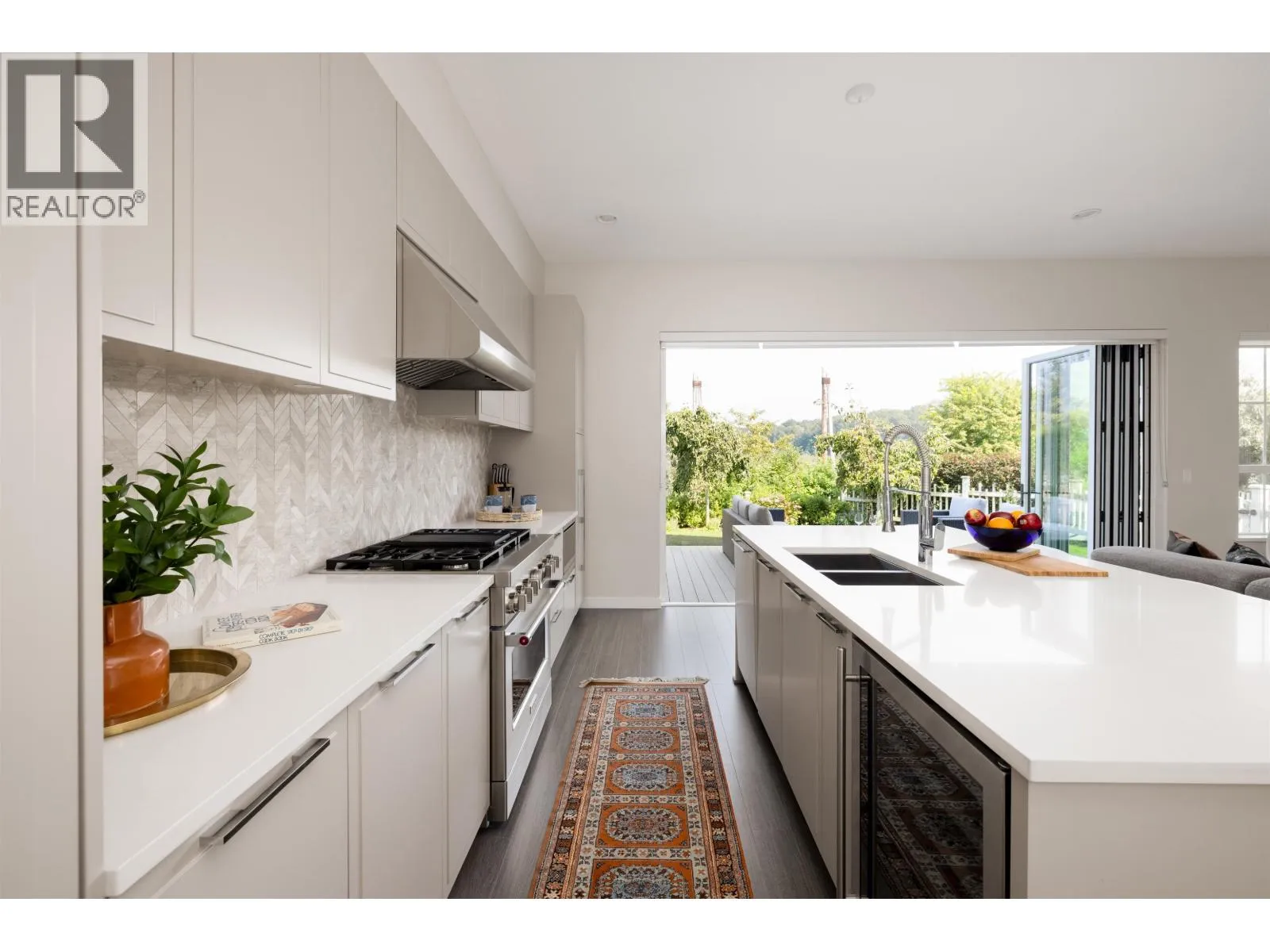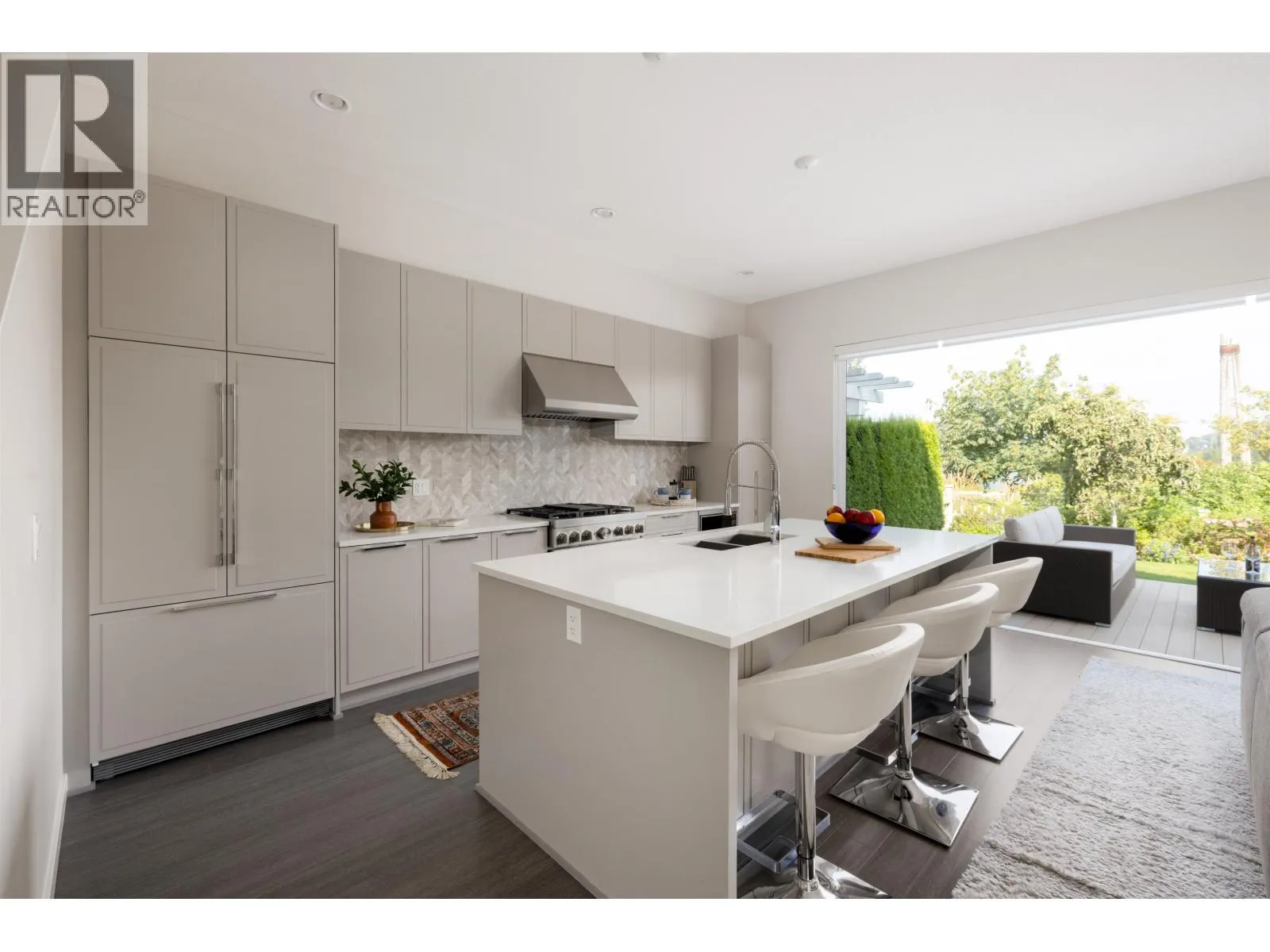Offering stunning, peaceful views of the river and marina, this duplex home provides luxurious finishes and an easy-care setting! Open plan, with soaring ceilings and huge window areas for views and ample natural light. Custom kitchen offers integrated appliances including wine fridge, gas cooktop, huge central island, living/dining with cozy gas fireplace. Eclipse doors open this living space to a