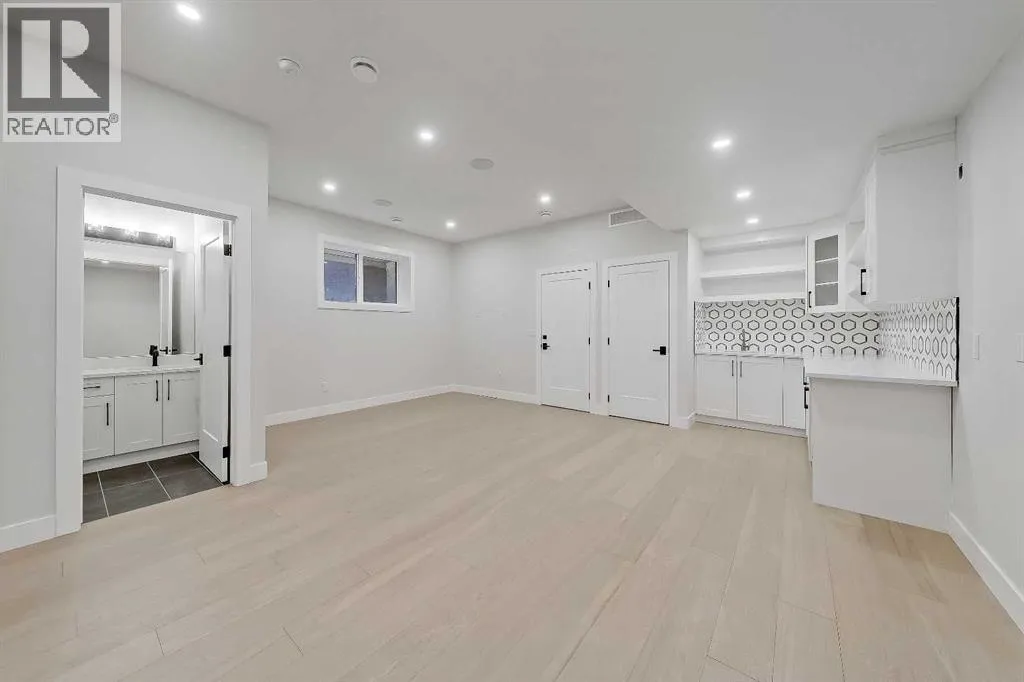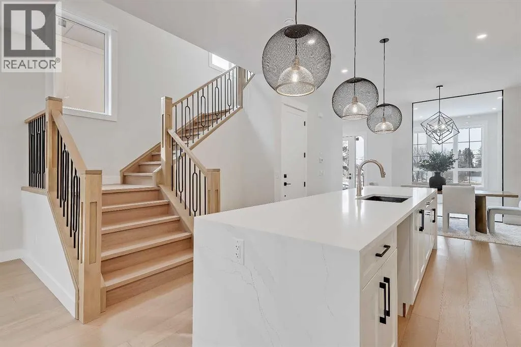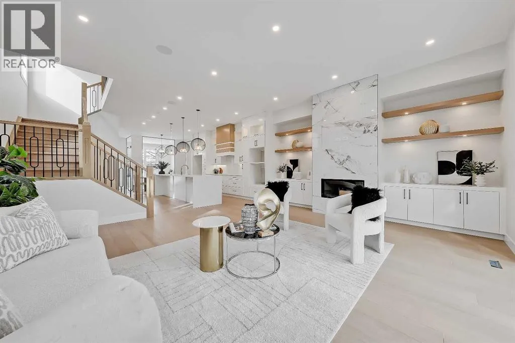 makes an immediate impression with statement tile and thoughtful storage, leading into a front PRIVATE OFFICE with oversized windows, ideal for working from home in a space that feels separate yet connected. Just beyond, the DINING ROOM sits in a central position, creating a natural transition between the front of the home and the main living areas, perfect for both everyday meals and hosting.The KITCHEN anchors the space with a long QUARTZ ISLAND, BUILT-IN OVEN, sleek cabinetry, and a layout designed to function as well as it looks. At the rear, the LIVING ROOM is warm and inviting, centred around a GAS FIREPLACE with CUSTOM BUILT-INS. Large sliding doors span the back wall, bringing in natural light and opening onto the deck and backyard for an easy indoor-outdoor connection. A discreet POWDER ROOM and smart storage complete the main level.Upstairs, the PRIMARY SUITE feels like a true retreat with VAULTED CEILINGS, large windows, and a spacious WALK-IN CLOSET. The ENSUITE is finished with a FREESTANDING SOAKER TUB, GLASS SHOWER, and DOUBLE VANITY, blending clean design with everyday comfort. Two additional bedrooms are well-sized and connected by a JACK & JILL BATHROOM, while the centrally located LAUNDRY room adds convenience exactly where it’s needed.The fully finished basement expands your living space with a large REC ROOM, WET BAR, and a fourth bedroom with its own WALK-IN CLOSET, plus a full bathroom. Whether used for entertaining, guests, or a private retreat, this level offers flexibility without compromise. Direct access to the ATTACHED DOUBLE GARAGE is paired wit h a functional MUDROOM entry, designed for real life.Outside, the backyard is private and usable, with space to relax and entertain. The elevated deck and large rear windows enhance the connection between indoor and outdoor living.Located in the heart of SOUTH CALGARY, this home offers quick access to MARDA LOOP, where you’ll find local favourites like MERCATO, VILLAGE ICE CREAM, and PHIL & SEBASTIAN COFFEE. You’re just minutes to RIVER PARK and the ELBOW RIVER PATHWAYS for walking, biking, and year-round outdoor living. Nearby schools include ALTADORE SCHOOL and CENTRAL MEMORIAL HIGH SCHOOL, with easy access to MOUNT ROYAL UNIVERSITY and downtown via 14TH STREET SW and CROWCHILD TRAIL.A refined home that delivers on layout, design, and livability, with features that truly set it apart. (id:62650)