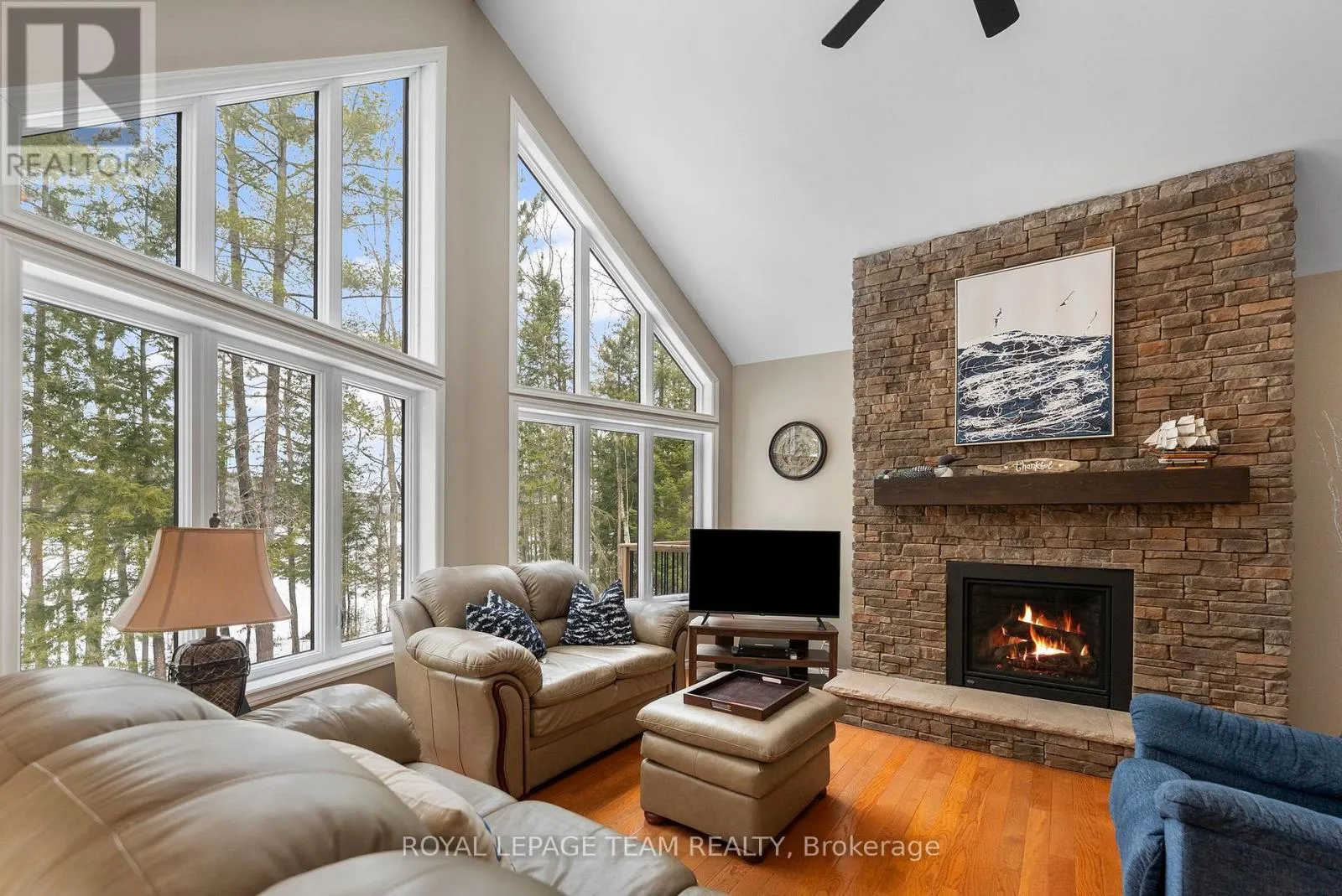Welcome to an exceptional waterfront offering in the highly coveted Lakewoods subdivision on prestigious Bark Lake in the heart of the Madawaska Valley. Built in 2017, this beautifully designed 2-bedroom, 2-bathroom home blends modern comfort with timeless Muskoka-inspired charm, delivering an unparalleled lakefront lifestyle. From the moment you enter, you are greeted by a bright, open-concept living space defined by