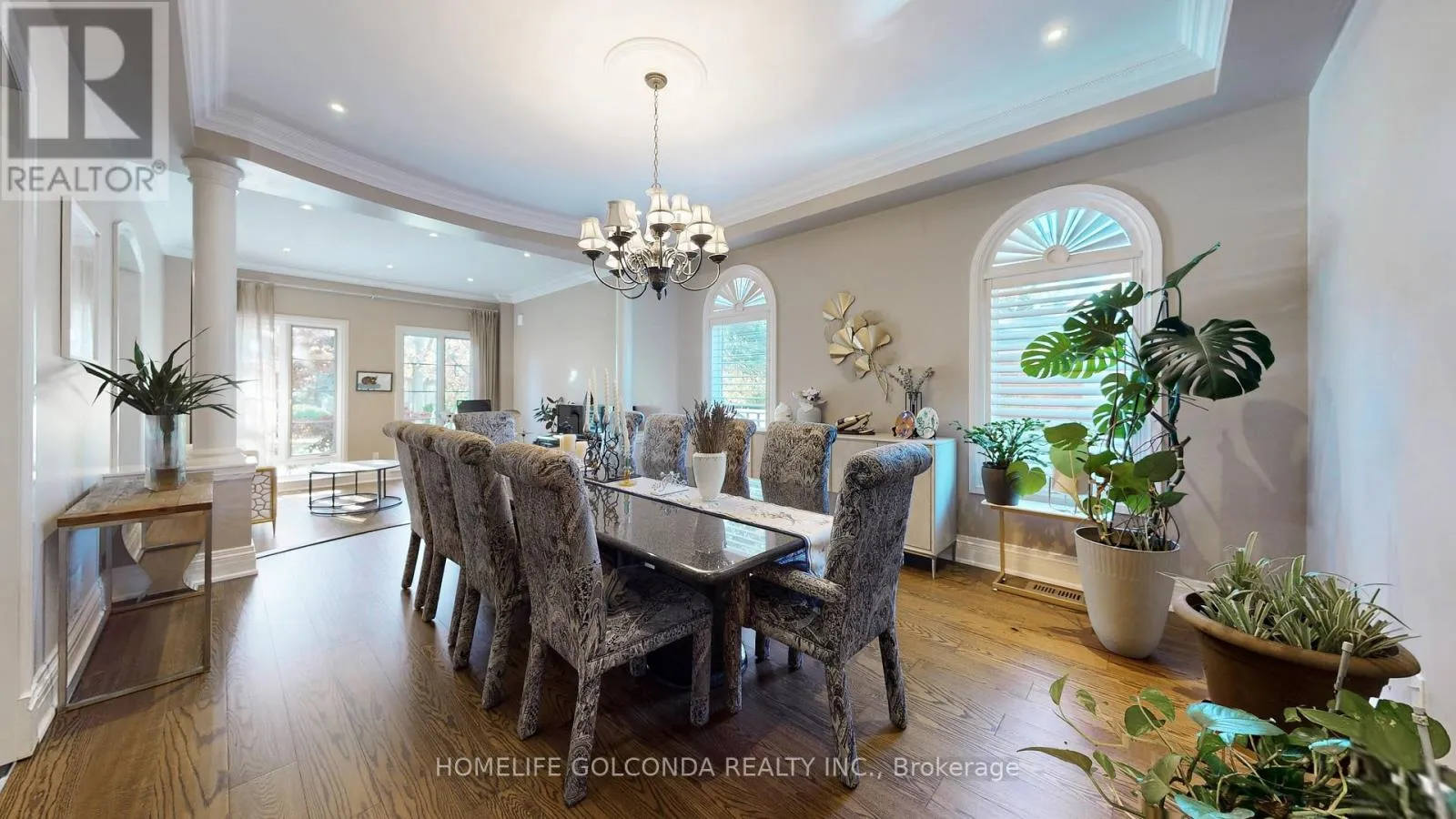 Welcome to this exceptional residence in the prestigious St. Andrew-Windfields community, nestled on a quiet, tree-lined street surrounded by luxury homes. Boasting approximately 4,600 sq. ft. above grade, this stately home features 10 ft ceilings on the main floor, grand principal rooms, and a soaring cathedral foyer. The panelled main-floor library and chef-inspired kitchen with granite centre island and breakfast