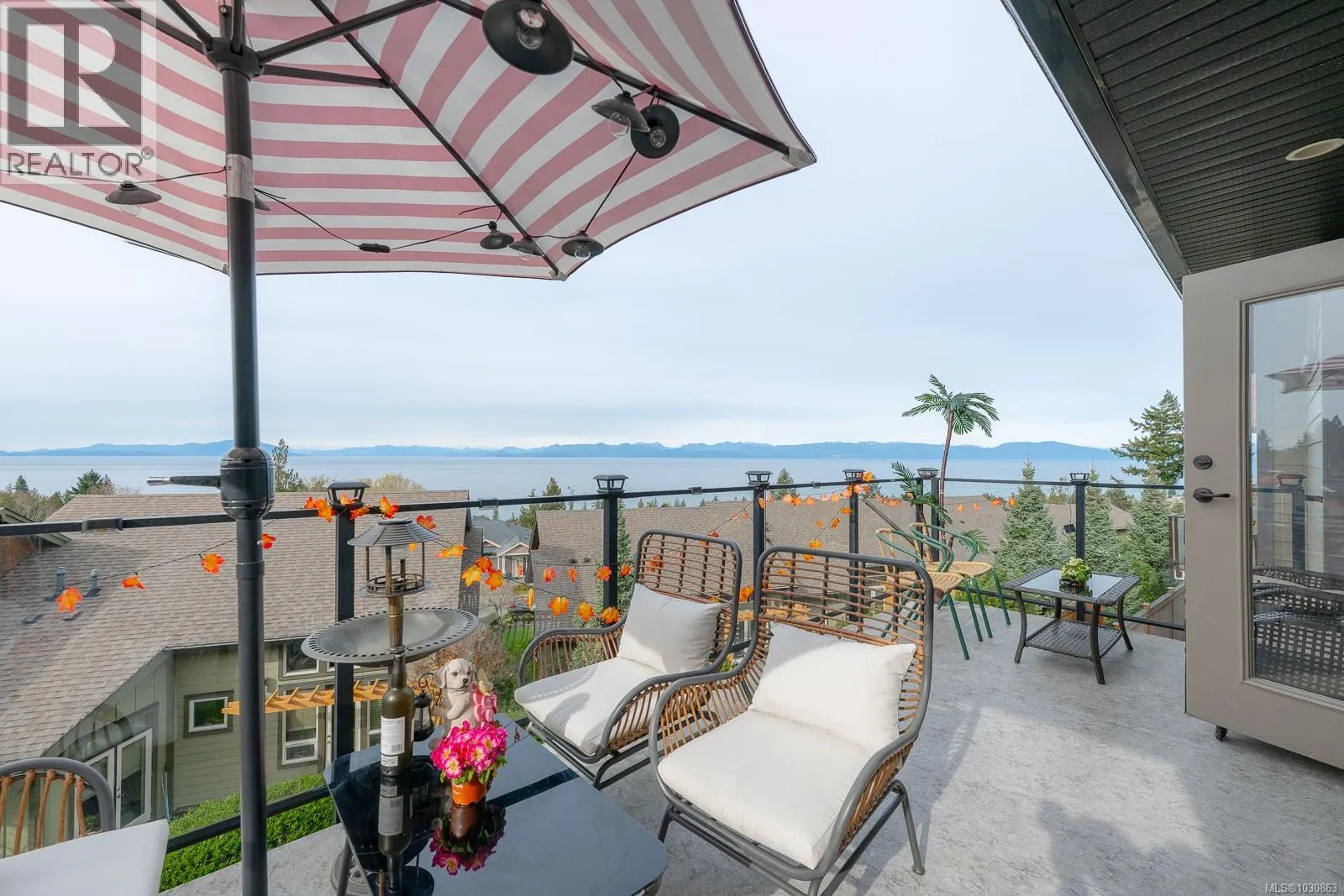 Discover coastal lifestyle in this 5-bed, 3-bath home in North Nanaimo’s Oceanview Terrace. This main-level entry home features an open-concept layout centered around a gourmet kitchen with granite countertops, a marble backsplash, and a cozy gas fireplace. Step onto the large balcony to soak in panoramic views of the Georgia Strait and Winchelsea Islands. The primary suite is a true