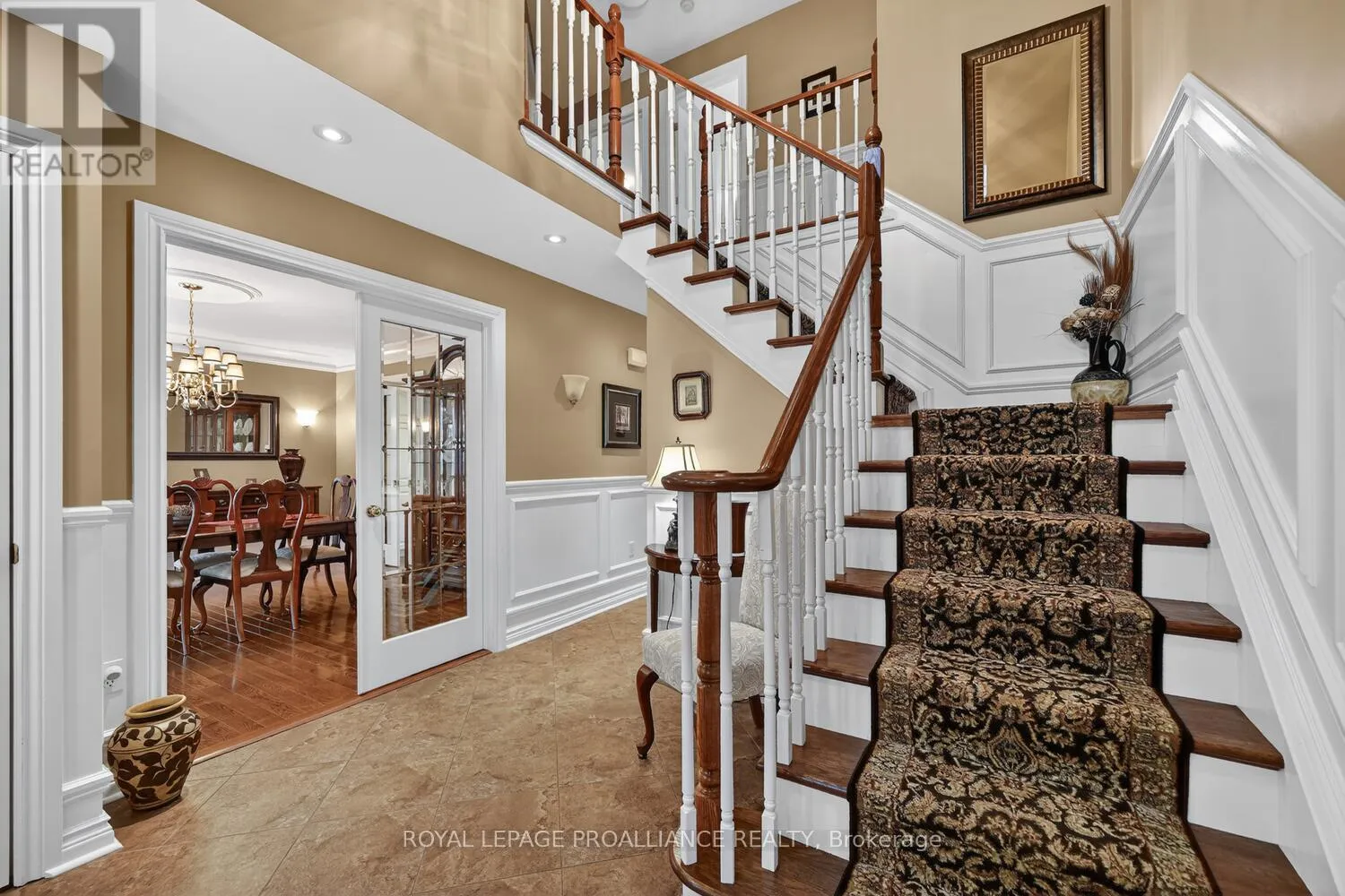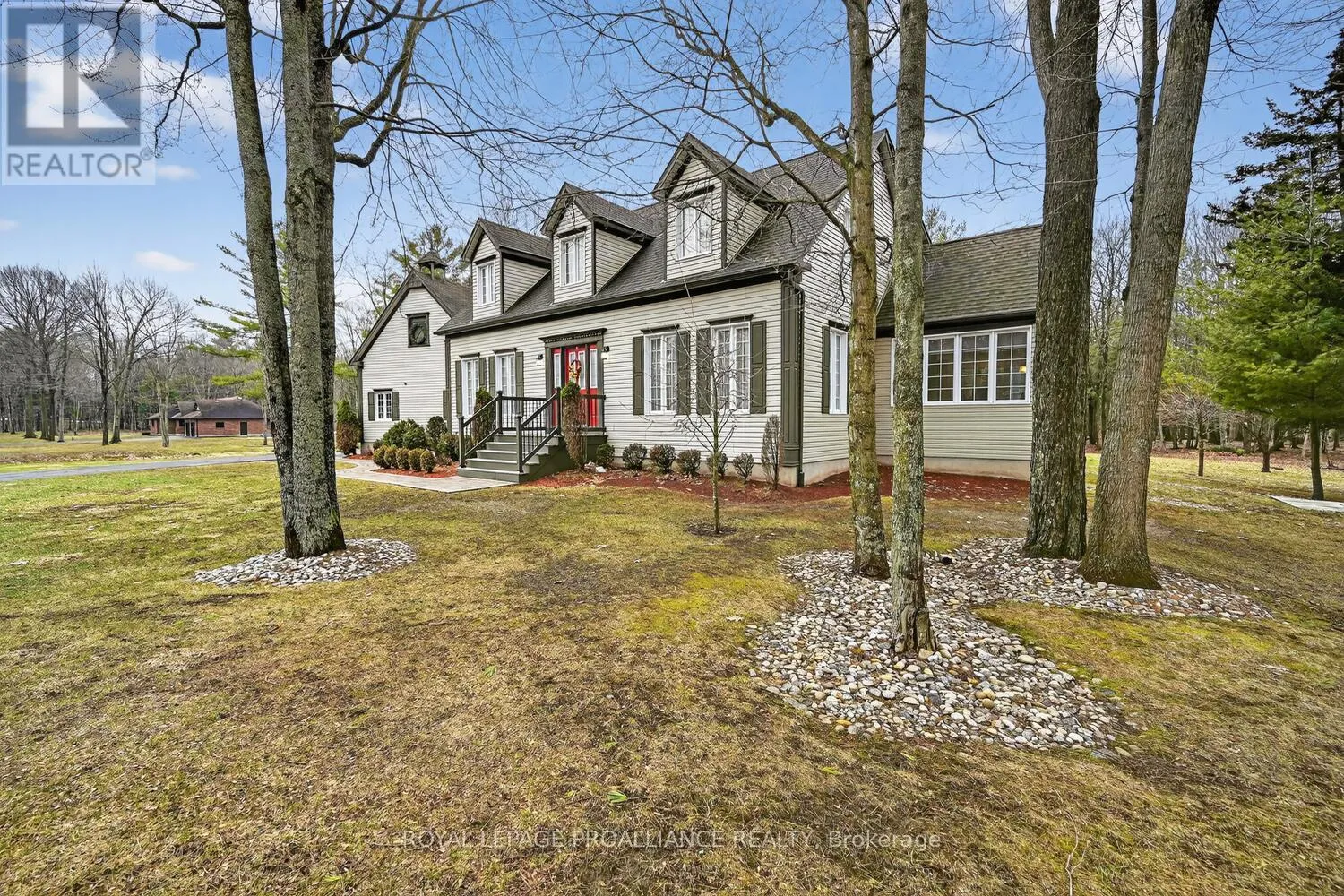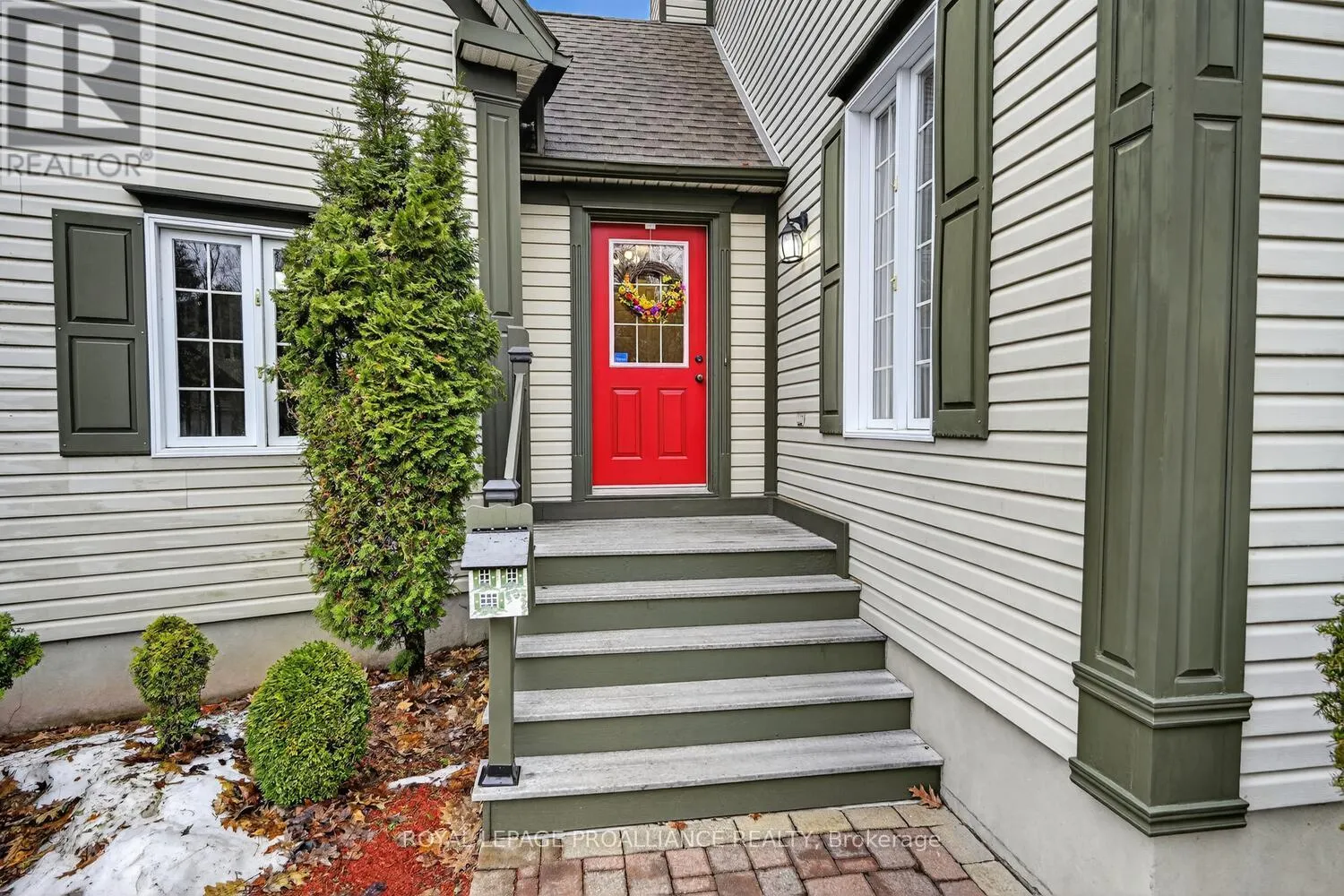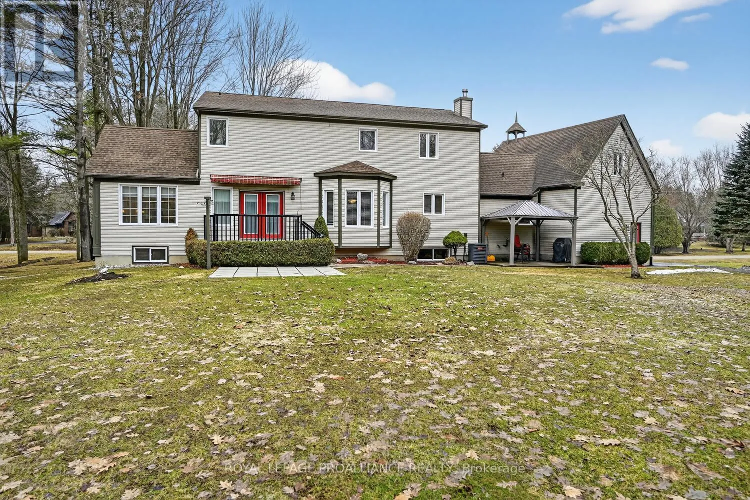 Lily Bay Drive North is an exclusive residential enclave of private executive homes located 5 minutes west of Brockville. This 3 bedroom, 3 bathroom home stands out as one of the most visually appealing in the development. Classic in style and design with soaring vaulted ceilings, angled tile floors in the entry way and centre hall plan provides a