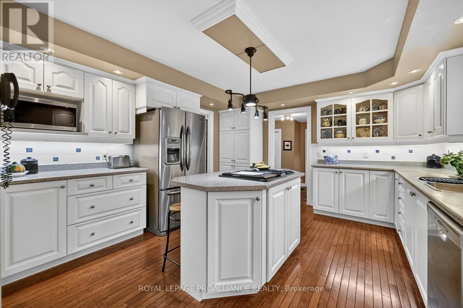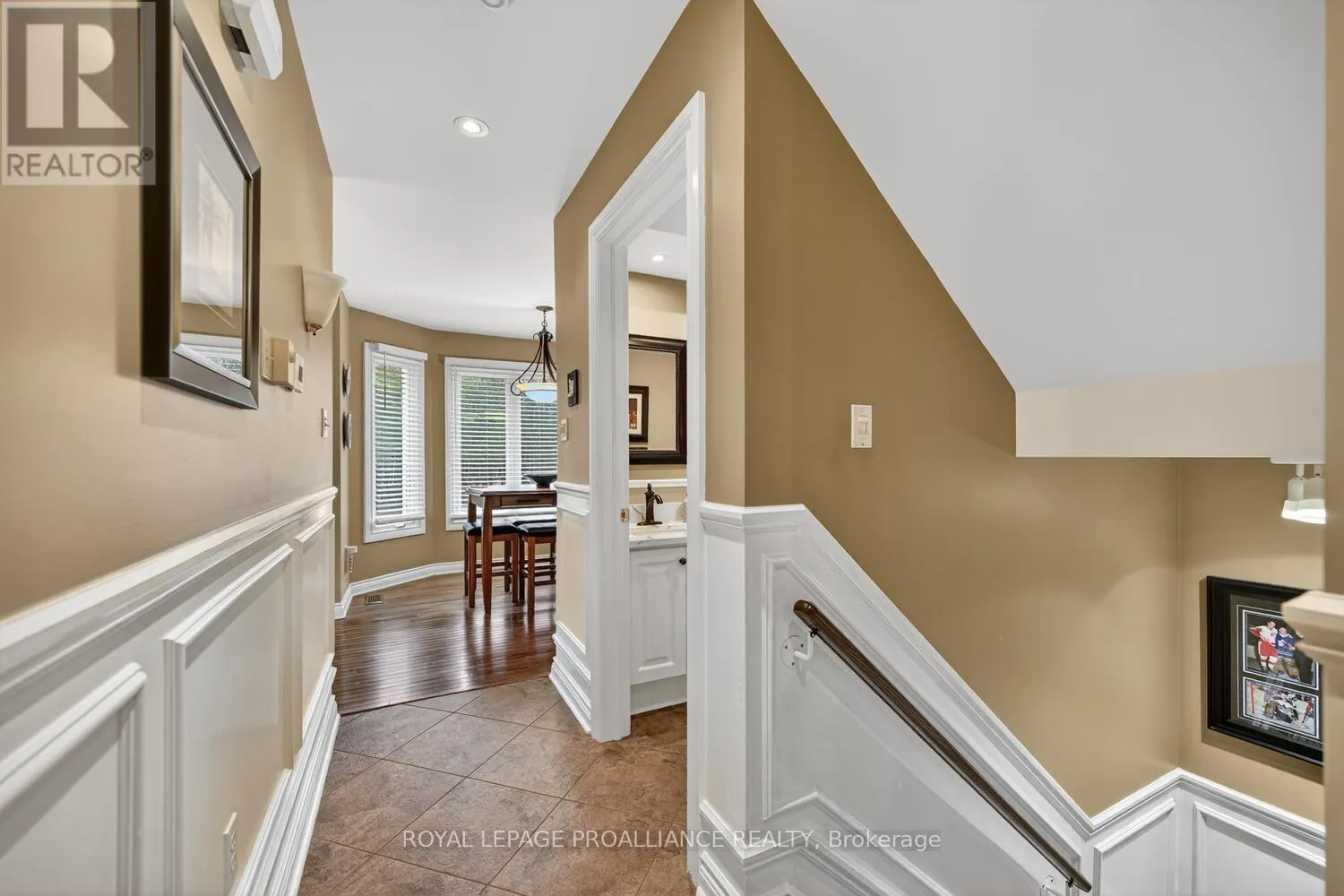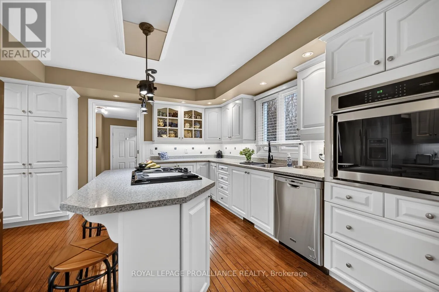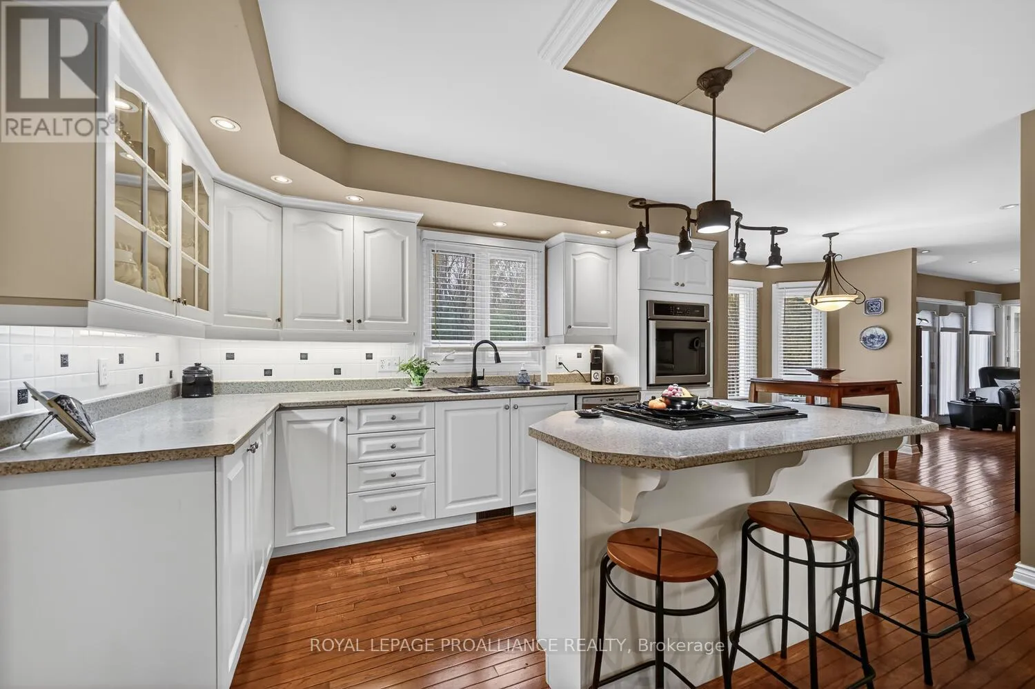 Lily Bay Drive North is an exclusive residential enclave of private executive homes located 5 minutes west of Brockville. This 3 bedroom, 3 bathroom home stands out as one of the most visually appealing in the development. Classic in style and design with soaring vaulted ceilings, angled tile floors in the entry way and centre hall plan provides a