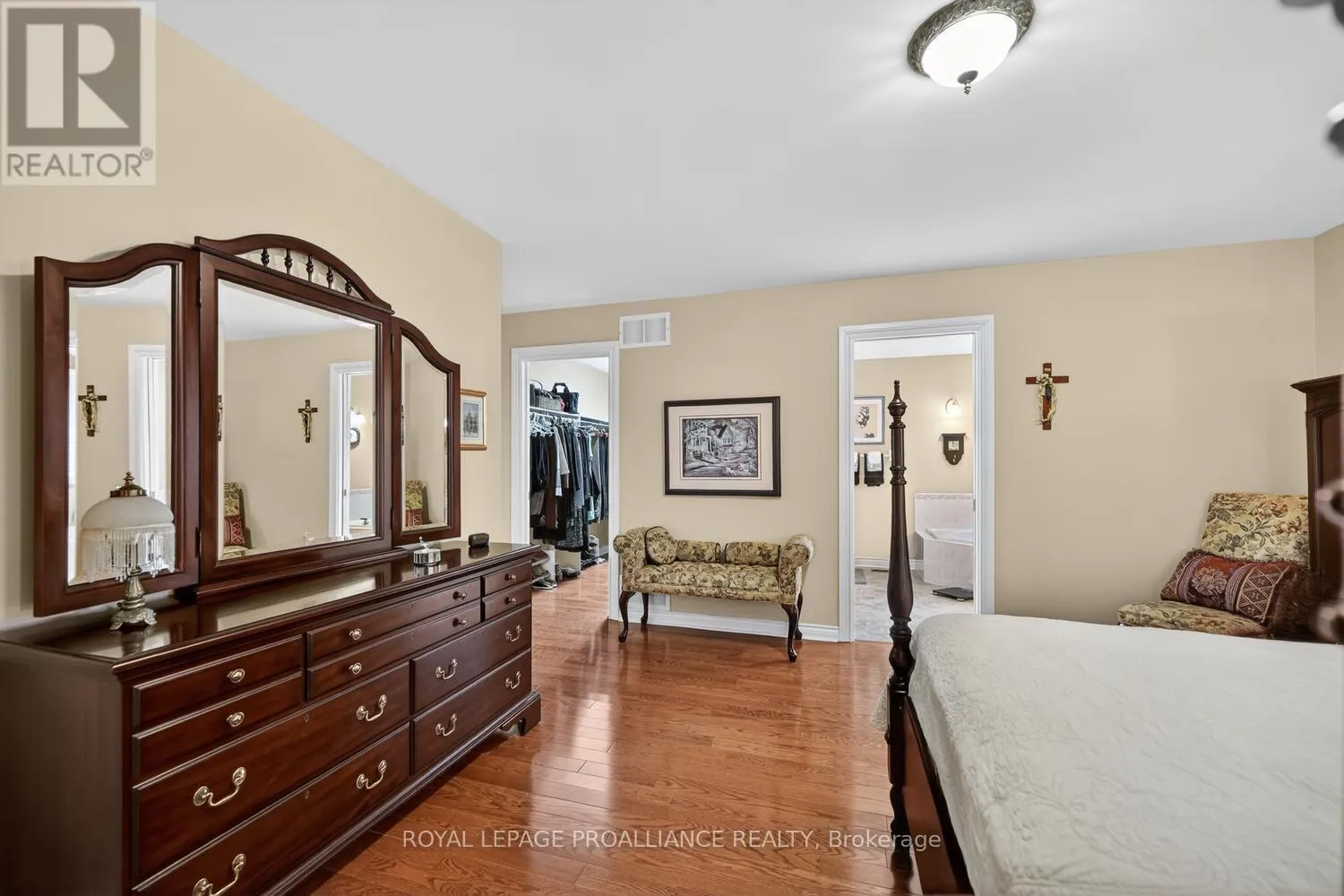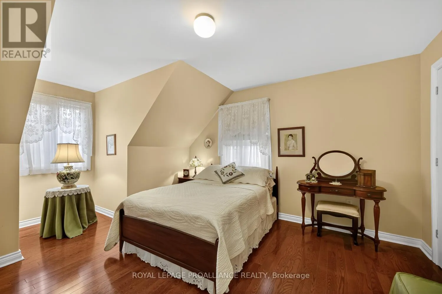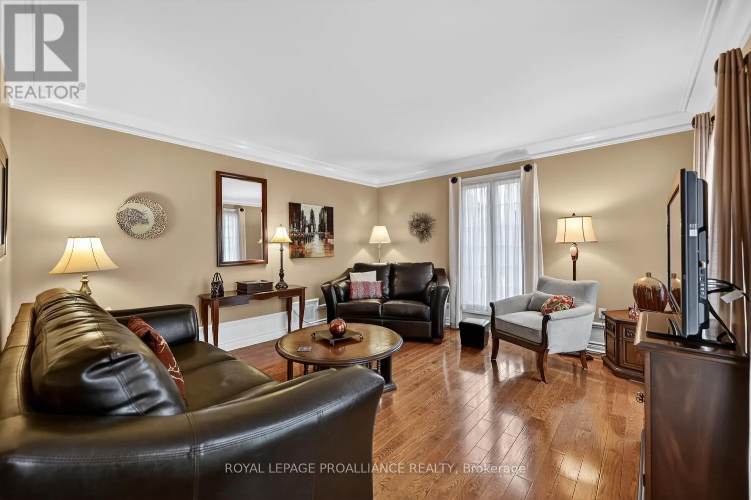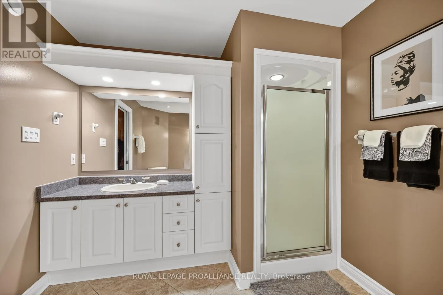 Lily Bay Drive North is an exclusive residential enclave of private executive homes located 5 minutes west of Brockville. This 3 bedroom, 3 bathroom home stands out as one of the most visually appealing in the development. Classic in style and design with soaring vaulted ceilings, angled tile floors in the entry way and centre hall plan provides a