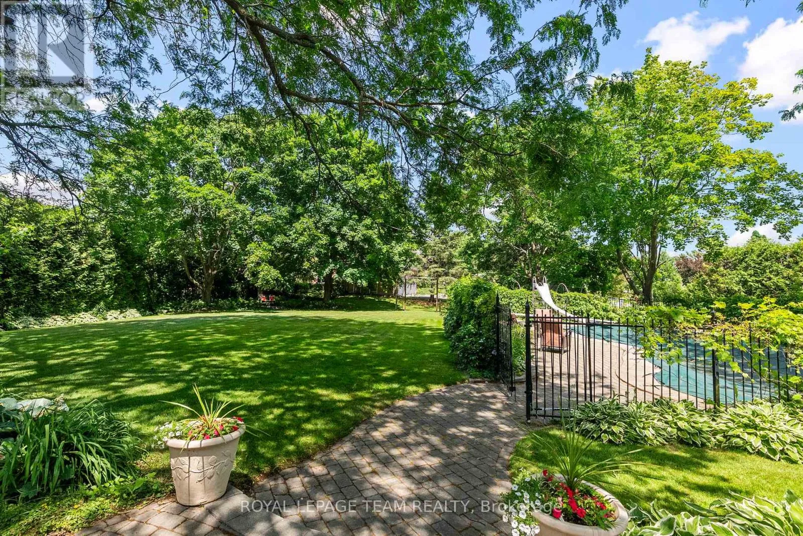 This dreamy Manotick Estates home offers stunning curb appeal with its white brick timeless beauty. Mature trees adorn this special lot, featuring an inground pool and an abundance of lush landscaping; offering natural privacy, relaxation and plenty of outdoor adventure. Upon entering, note the thoughtful design to welcome in natural light and architectural grace throughout. The circular foyer emphasizes its