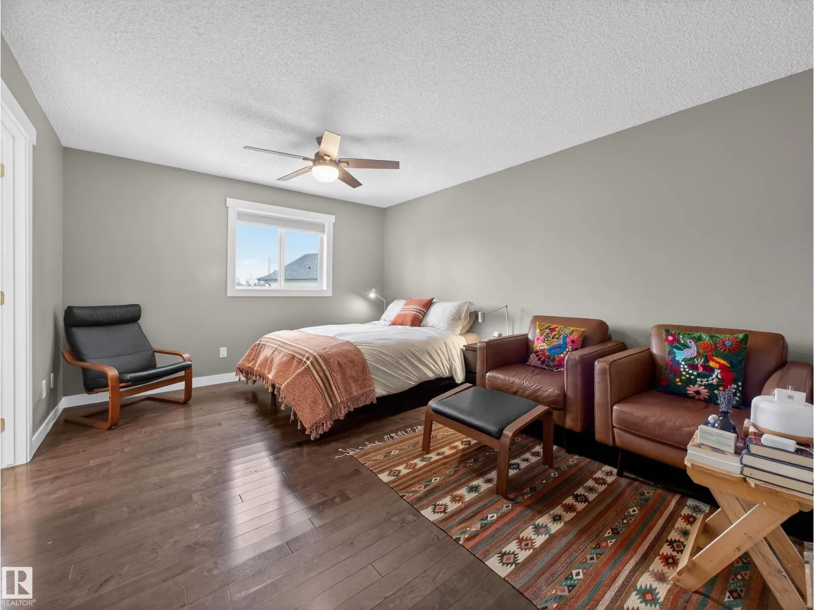 Stunning townhouse in the prestigious community of Haddow. Bright, spacious, and beautifully upgraded, this home features charcoal maple hardwood flooring throughout the main floor & primary suite. The inviting living room offers abundant natural light & a cozy gas fireplace. The impressive chef-inspired kitchen boats stainless steel appliances, including a gas stove, quartz countertops, glass tile backsplash, hot water on