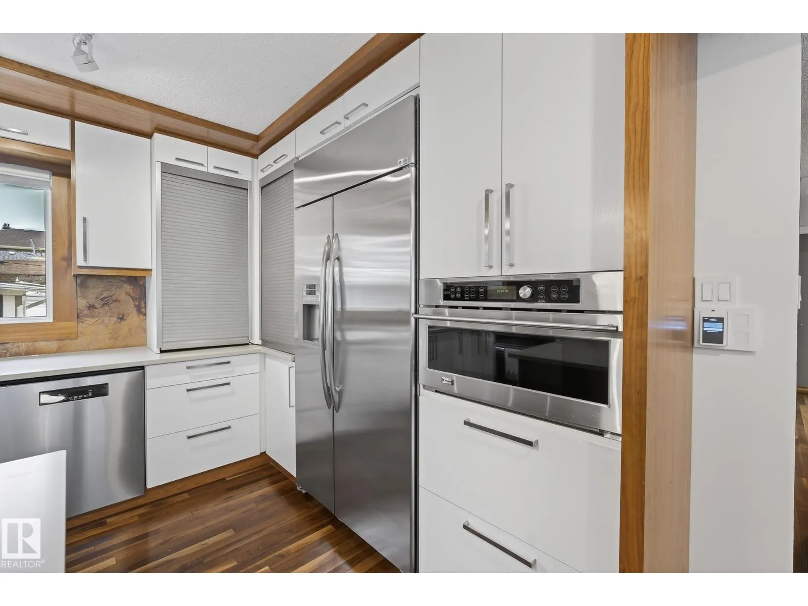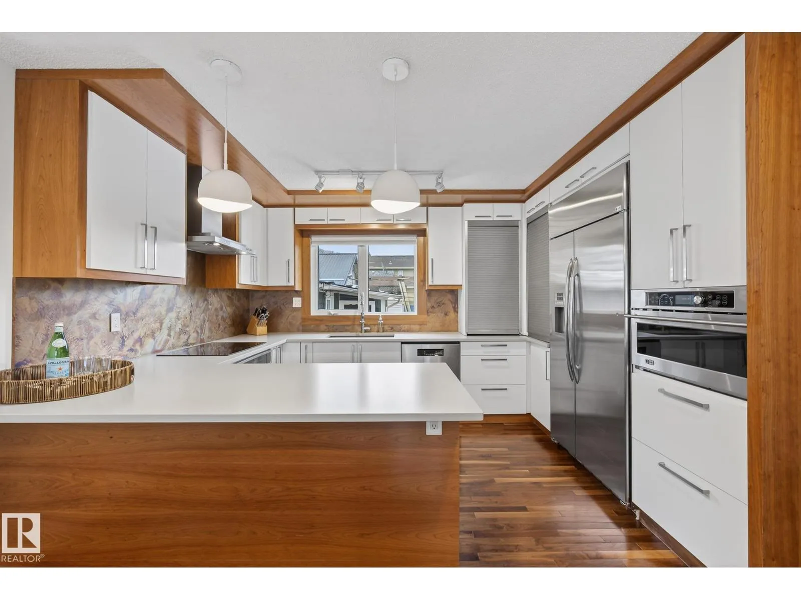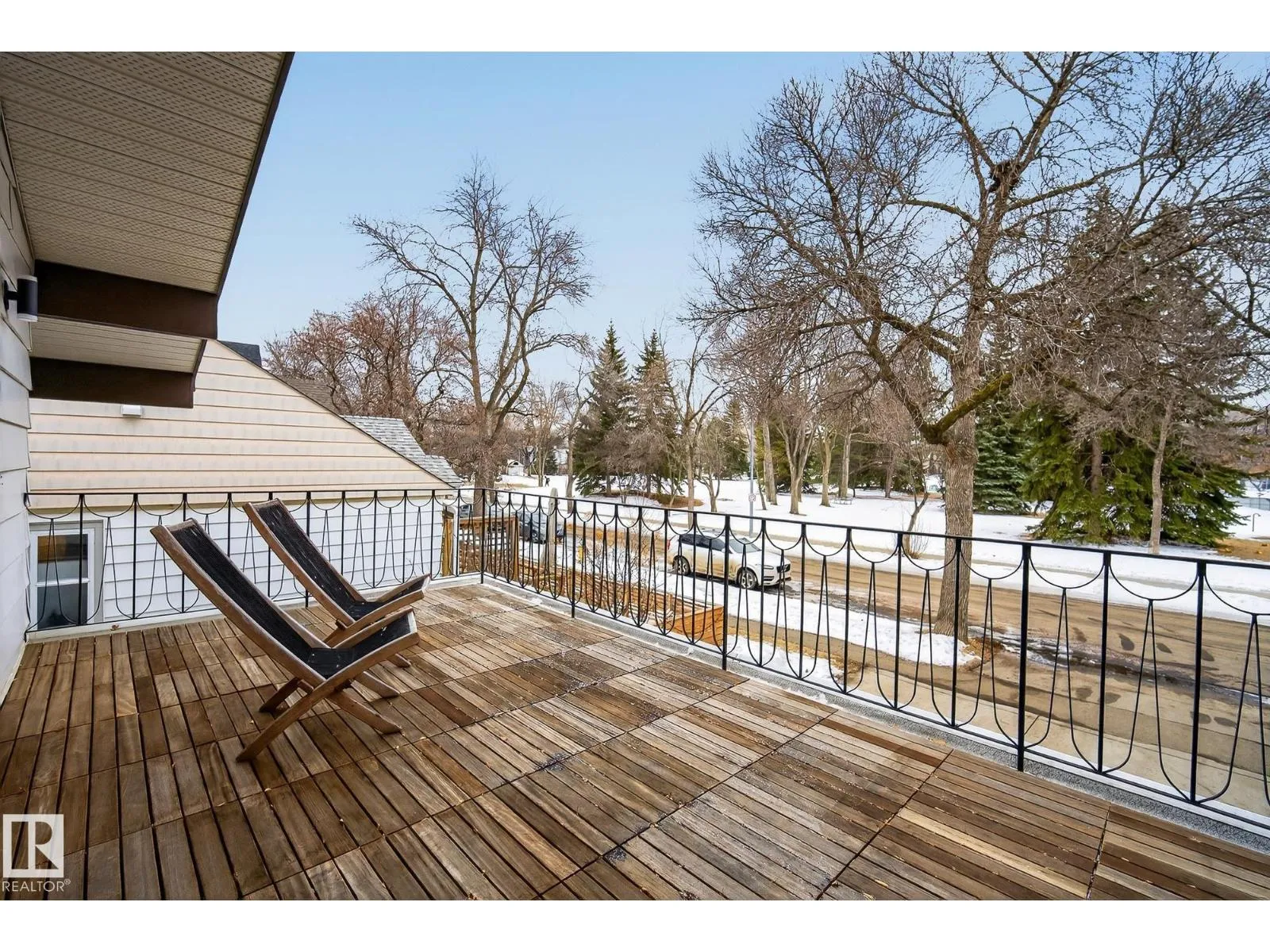 Directly across from Ritchie Park, this fully renovated 1,371 sq ft raised bungalow offers 5 bedrooms (3 up, 2 in renovated basement), walnut hardwood floors, Silestone countertops, brick fireplace, front deck overlooking the park, and all new windows & doors (2025). Two garages: 20’x22′ front drive and 16’x20′ rear concrete. Above the rear garage sits an original Honomobo steel-frame studio