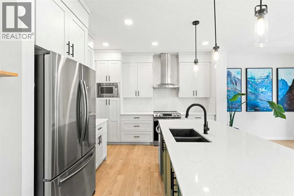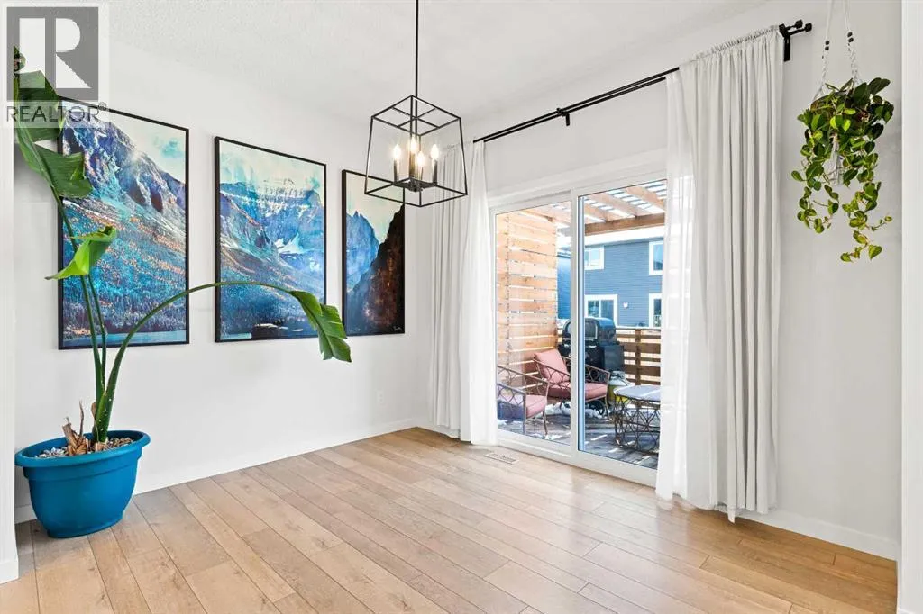Nearly new 3 bedroom, 2.5 bathroom home offering over 2,000 sq ft of thoughtfully designed living space in the friendly community of Heartland. This move-in ready home offers stylish finishes, functional family living, and a great location within walking distance to Heartland shopping, parks, green space, and walking trails, with easy access to Highway 1A.The main floor features high ceilings,