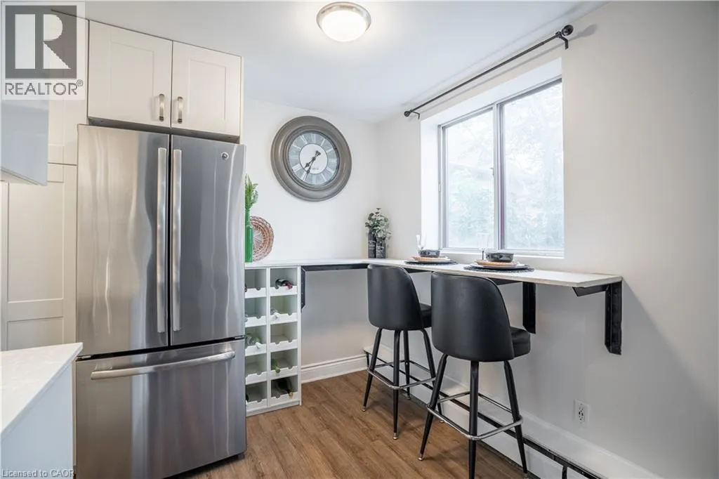 This bright, move-in ready 1-bedroom condo in trendy Corktown offers a spacious bedroom, large combined living and dining area and an updated kitchen finished with quartz countertops. The unit includes a four-piece bathroom and an owned underground parking spot. Residents enjoy building amenities such as an exercise room and a BBQ area, and the location provides excellent walkability to restaurants,