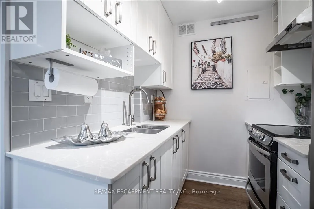 This bright, move-in ready 1-bedroom condo in trendy Corktown offers a spacious bedroom, large combined living and dining area and an updated kitchen finished with quartz countertops. The unit includes a four-piece bathroom and an owned underground parking spot. Residents enjoy building amenities such as an exercise room and a BBQ area, and the location provides excellent walkability to restaurants,