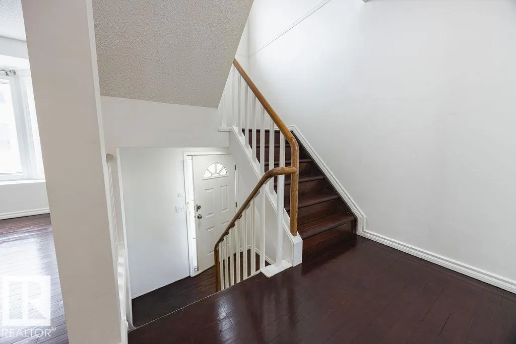 Spacious townhouse offering over 1,700 sq ft of comfortable living in a prime central location—just minutes to NAIT, MacEwan University, Kingsway Mall, hospitals, and downtown. Freshly painted and professionally cleaned, this home is truly move-in ready, featuring brand new fridge, stove, washer, and dryer. Hardwood floors flow throughout, and the bright, oversized living room showcases large bay windows that flood