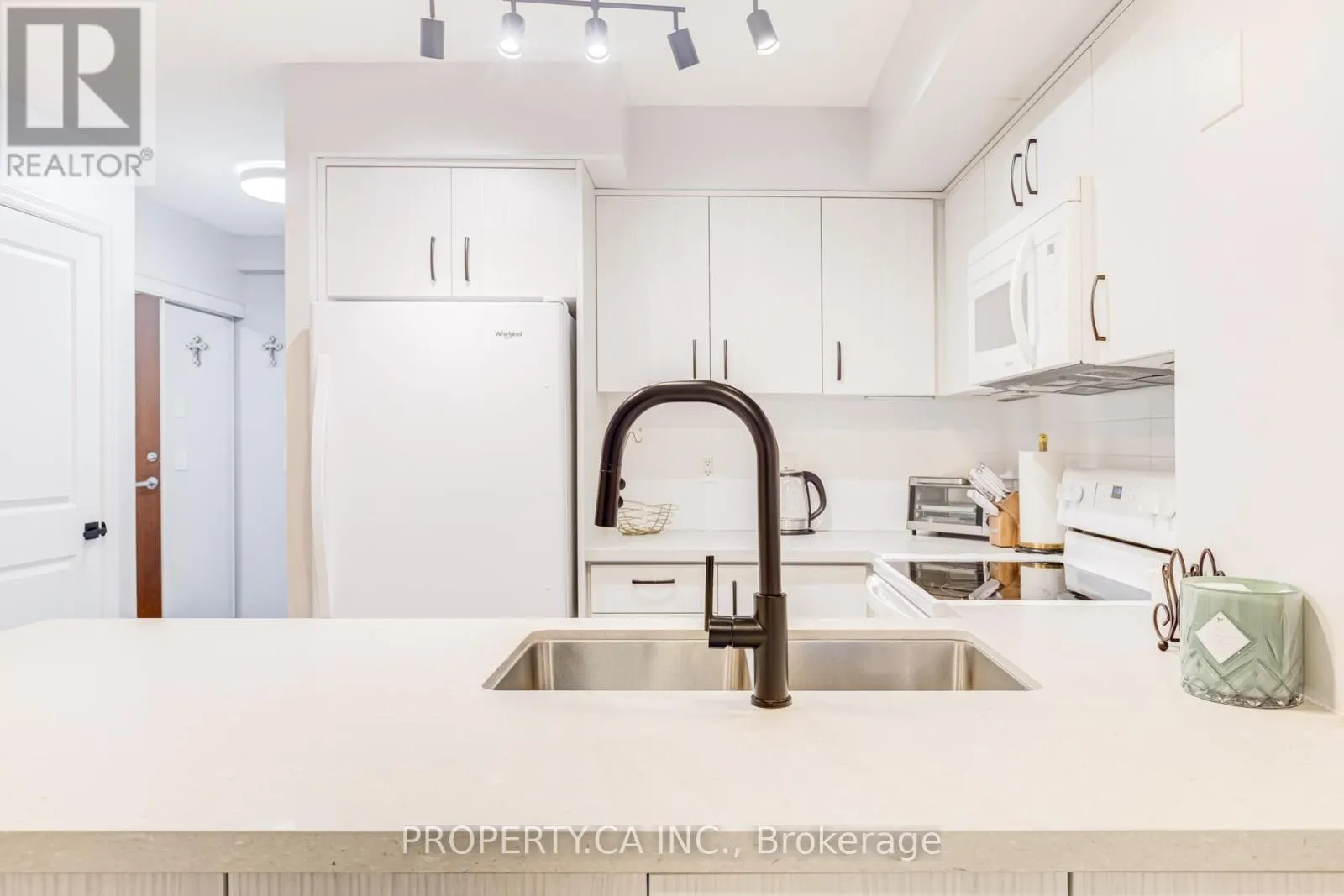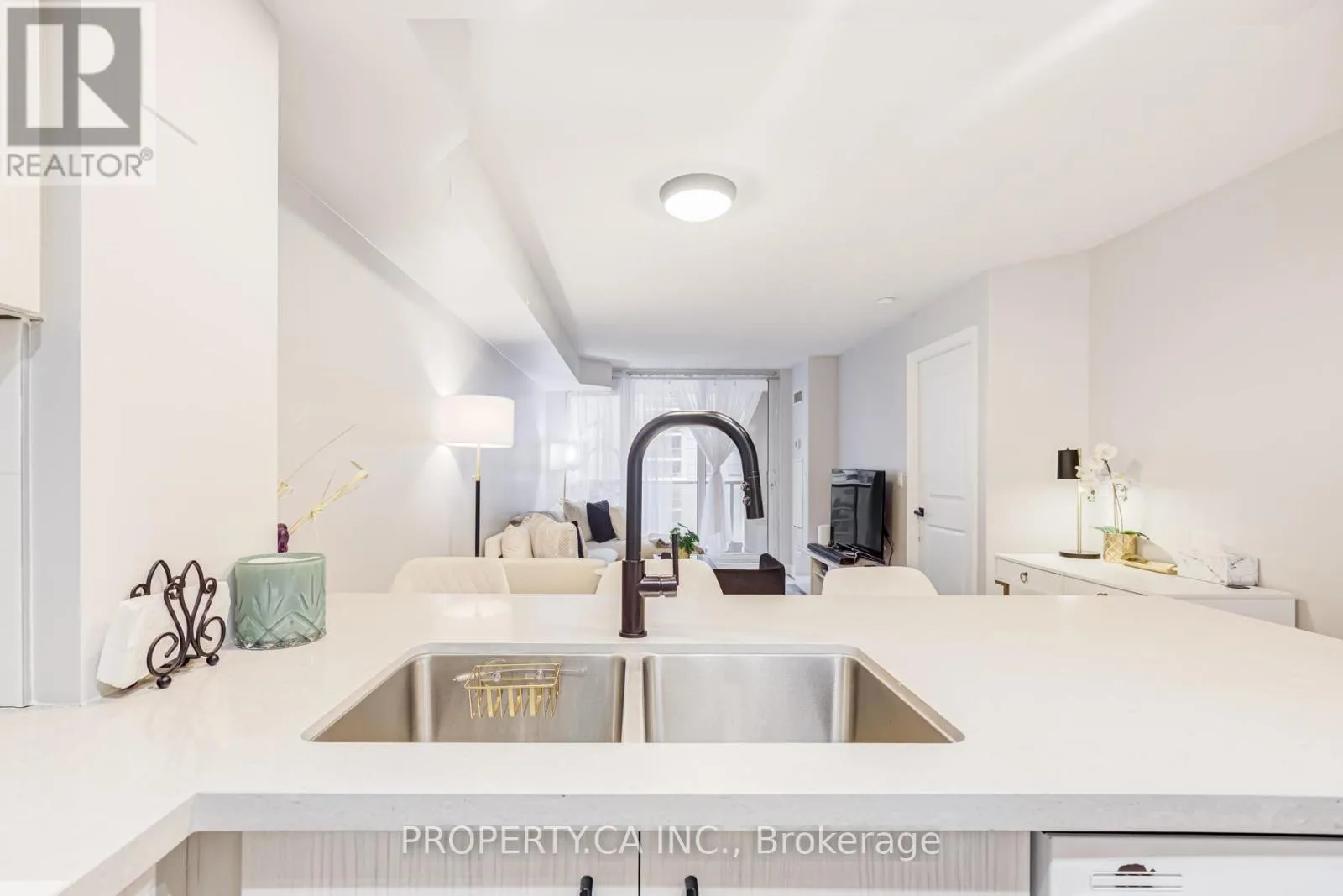 Discover urban luxury next to Square One in Mississauga! This stylish renovated 1 Bedroom + Den offers 2 full baths, parking, & locker. Enjoy the bright, open living spaces with luxury vinyl plank flooring and a large, fully covered terrace sized balcony. The gourmet kitchen features quartz countertops, pot lights and additional cupboards for storage. Relax in the master bedroom