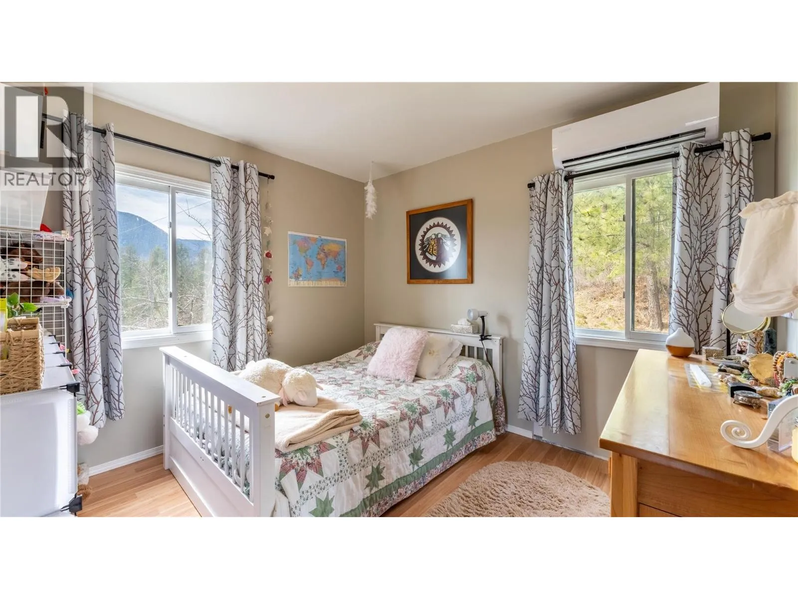 Check out this home with a spectacular view looking across the valley! Situated on a quiet road in West Creston this property also offers 1.68 acres, a greenhouse and garden space, and a double car detached garage. The home boasts an open concept living space enhanced by the expanse of windows showing off the view. The main floor also features