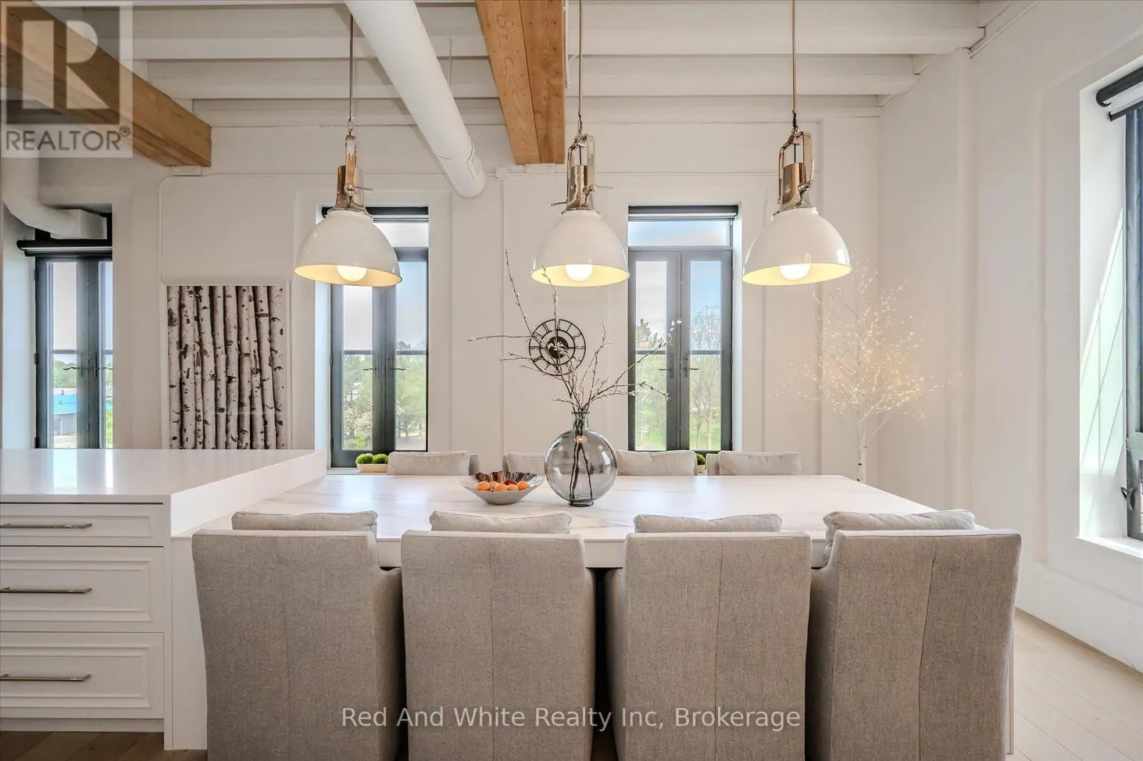 Welcome to Riverbank Lofts, a boutique historic stone conversion on the Speed River in the heart of Hespeler Village. This rare corner unit offers luxury with 12′ ceilings, exposed beams, and oversized windows showcasing river and waterfall views. Featuring 2 bedrooms with private ensuites, a powder room, and a show-stopping 18′ island kitchen with built-in appliances, servery, and pantry.High-end finishes