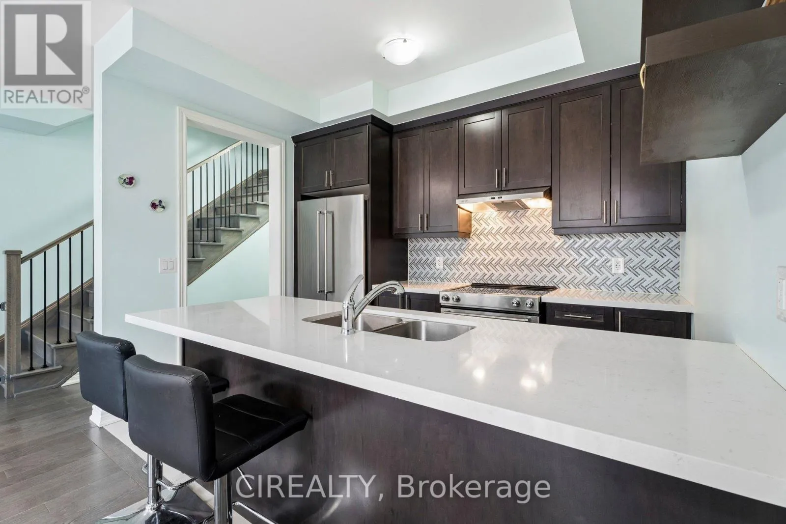 Welcome to this stunning, recently built executive townhome in the heart of Ancaster with a single-car garage. The main floor offers bright, open-concept living with a chef’s kitchen featuring stainless steel appliances, quartz countertops, a peninsula with seating, and modern dark cabinetry. Enjoy the professionally upgraded deck, perfect for relaxing or entertaining, plus a convenient 2-piece bath and garage access.