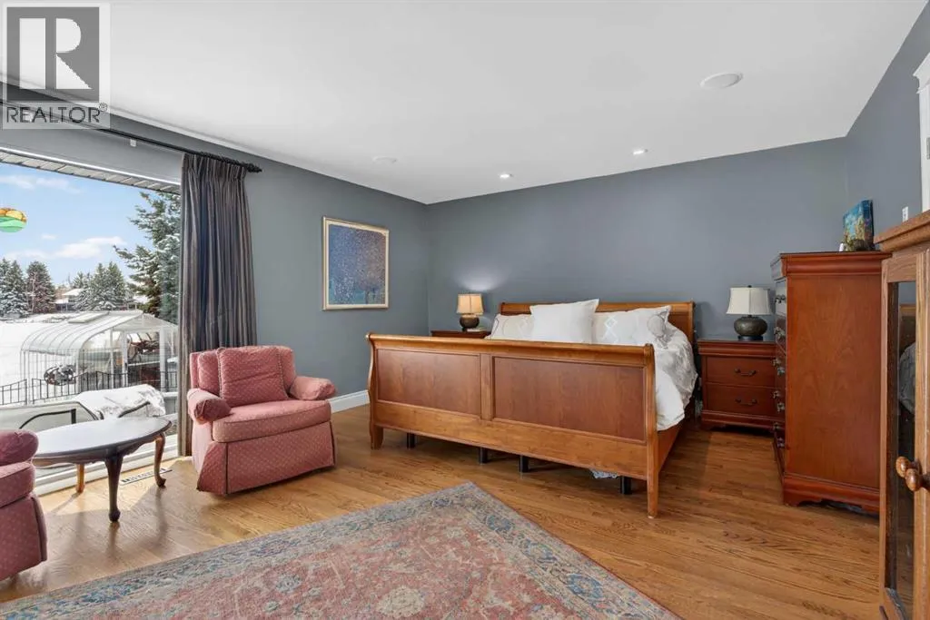 its heart is a large central island, all counters are leather-finished granite countertops. You’ll find an abundance of gleaming white cabinetry with under-cabinet lighting and soft-close doors, along with high-end stainless steel appliances including three ovens—one being a steam oven—an induction cooktop with a side gas hob, a hidden dishwasher and a Sub-Zero fridge. A built-in computer nook adds convenience, and the hardwood flooring continues seamlessly throughout the home.Adjacent to the kitchen, the formal dining room overlooks the front yard and includes a built-in buffet, while the sun room offers a cozy gas fireplace and easy access to the outdoors—perfect for enjoying lake access or summer BBQs.The primary bedroom is an absolute retreat, offering ample space for a king-sized suite, private access to the lake, and another gas fireplace. The custom walk-in closet provides exceptional storage, and the luxurious seven-piece ensuite continues the heated marble flooring and features a jetted tub, dual sinks, steam shower, as well as a bidet and urinal.The main floor also includes two additional generously sized bedrooms and a unique study complete with a minibar and a hidden bookshelf door. A four-piece bathroom with a classic clawfoot tub completes this level.Downstairs, the finished lower level offers a spacious T-shaped recreation room with a wood-burning fireplace, a wine room with a Sub-Zero wine fridge, a fourth bedroom, a cold room, a three-piece bathroom, a workshop area, and plenty of storage.The standout feature of this home is the south-facing backya rd. Designed for both relaxation and recreation, it includes a large deck, hot tub, greenhouse, and plenty of green space for kids or pets. Your private dock lets you fully enjoy lake living year-round—whether it’s swimming, skating, fishing, or boating.Additional highlights include a triple attached garage, updated windows, solar panels to help reduce energy costs, durable concrete shingles, a built-in Nuvo speaker system throughout, air conditioning, an irrigation system, all in a location that is quiet, but has easy access to schools, and shopping, and much more.Don’t miss your chance—call today and move in just in time to enjoy the lake all summer long! (id:62650)
