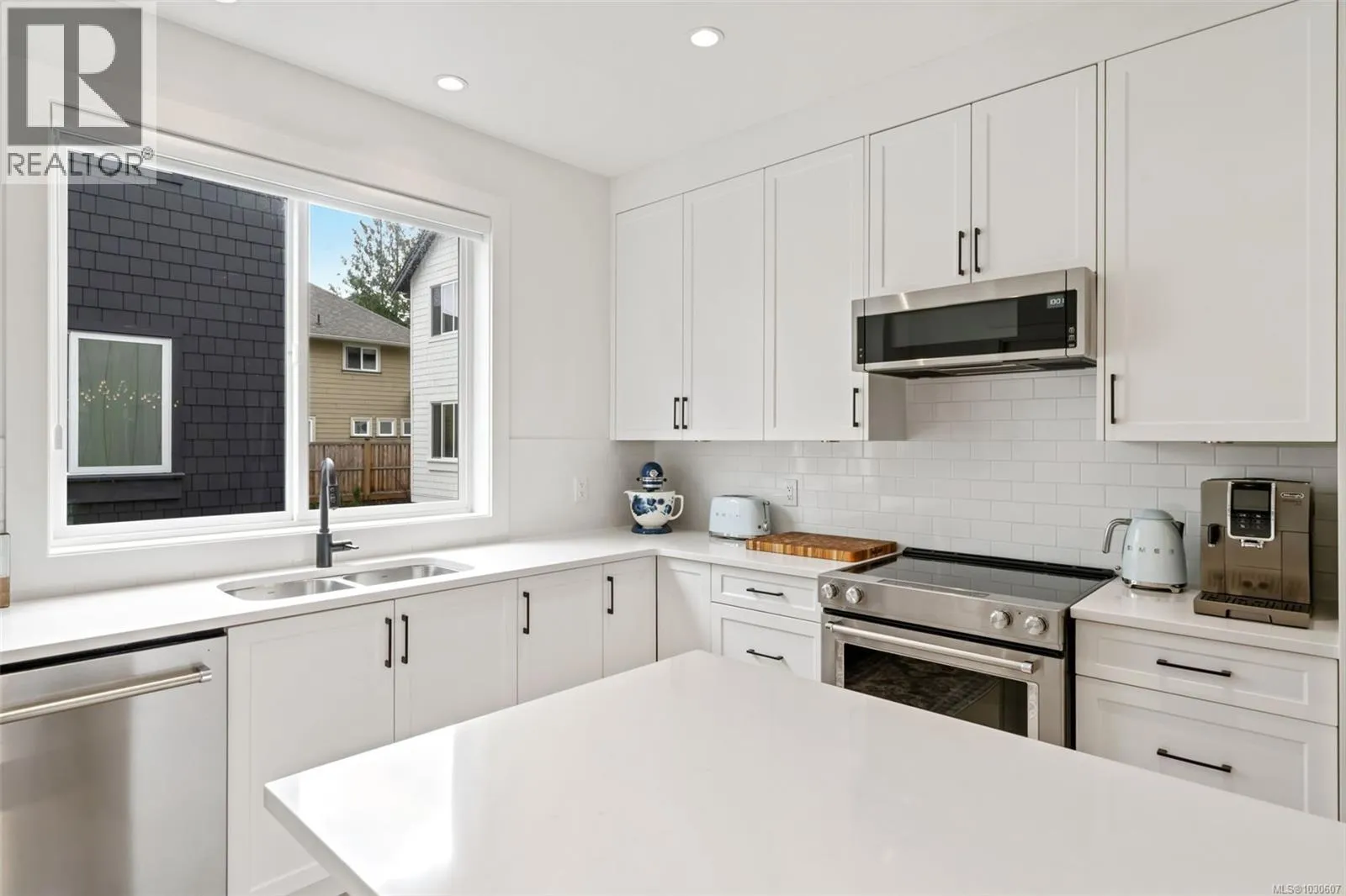 NO GST!!! Experience refined coastal living in this beautifully appointed corner-unit townhome, offering a perfect blend of modern farmhouse design and everyday functionality. This thoughtfully designed residence was built in 2025 & features 3 bedrooms and 4 bathrooms with 9-foot ceilings on both the main and upper levels, creating an airy, light-filled atmosphere throughout. The heart of the home is