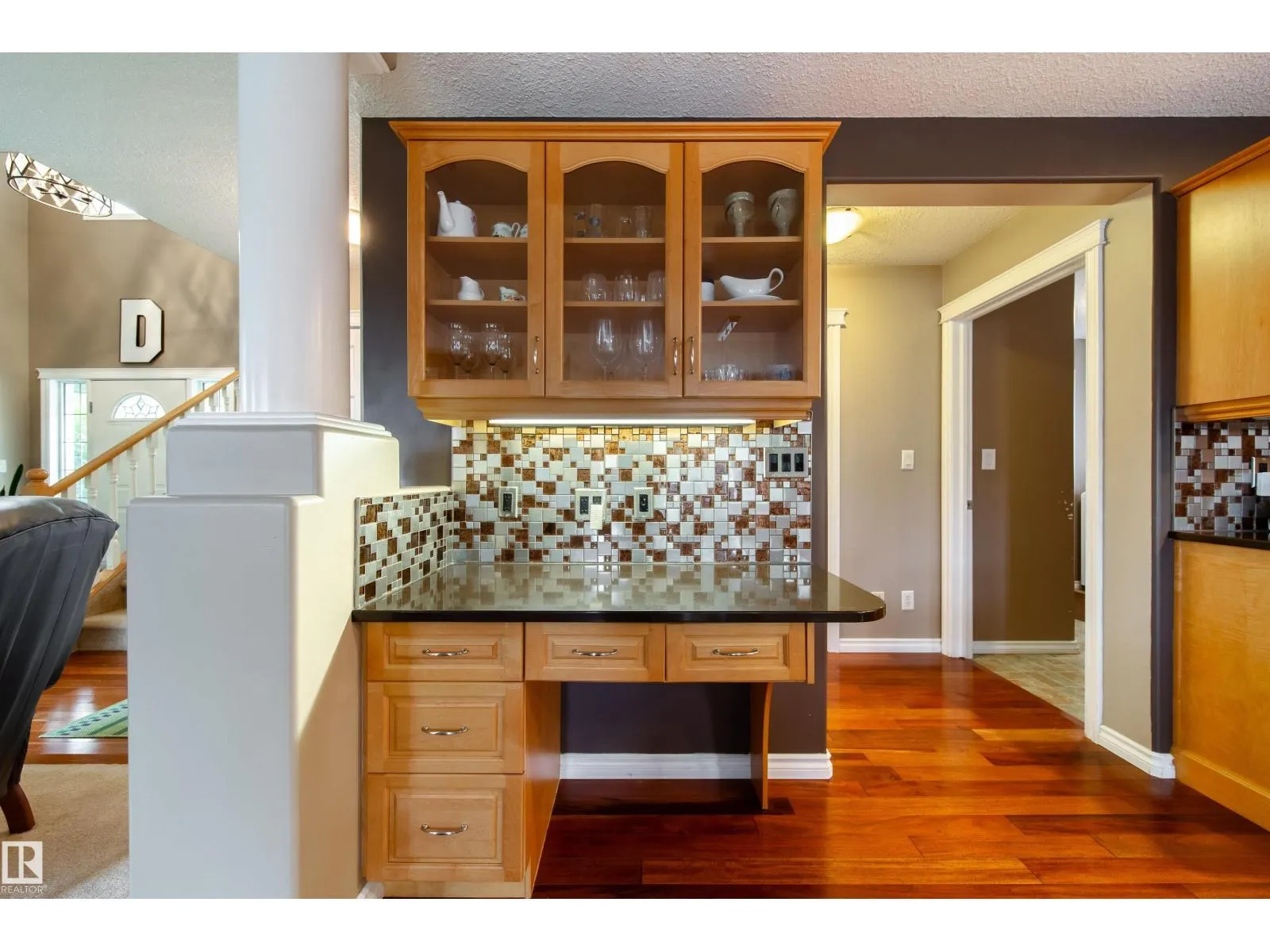 Exceptional 2-storey home offering 3 bedrooms, 3.5 bathrooms, and a fully finished basement, all reflecting strong pride of ownership. The open-concept main floor features a modern kitchen with quartz countertops, center island, walk-in pantry, and built-in office hutch. The adjoining living room includes a cozy fireplace, while the main level also offers a large laundry room with storage and a