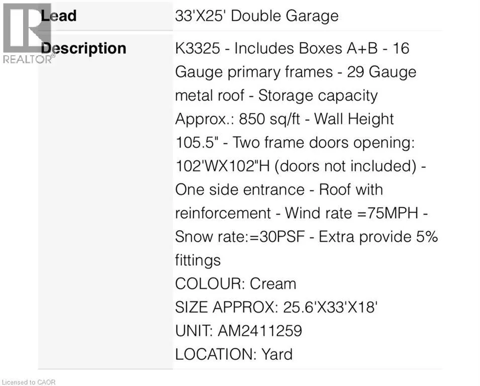 Workshop or storage sheds available for lease. Owner will build 5 inch concrete pad and structure. There is a shared washroom and shower facility on site. Dimensions 25.6’x33’x18′. Aprox 850sqft (id:62650)