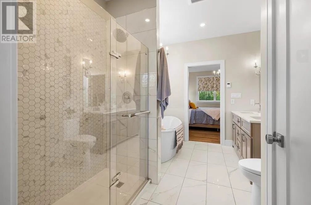 When viewing this property on Realtor.ca please click the virtual link for a full video. Nestled on 1.4 acres, this custom-built modern farmhouse (2021) offers over 4,700 sq ft of thoughtfully designed living space across three levels?ideal for a growing family. The open-concept main floor features a spacious living room with a bespoke fireplace wall and 8-foot doors to a