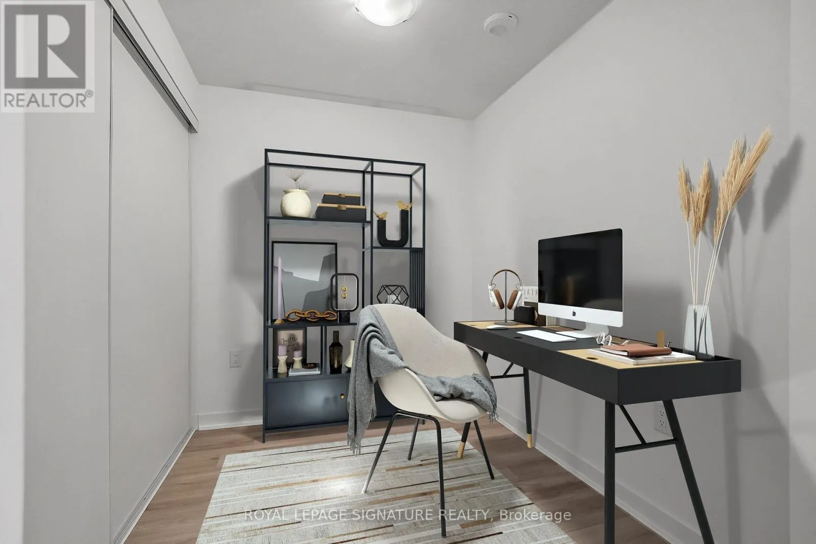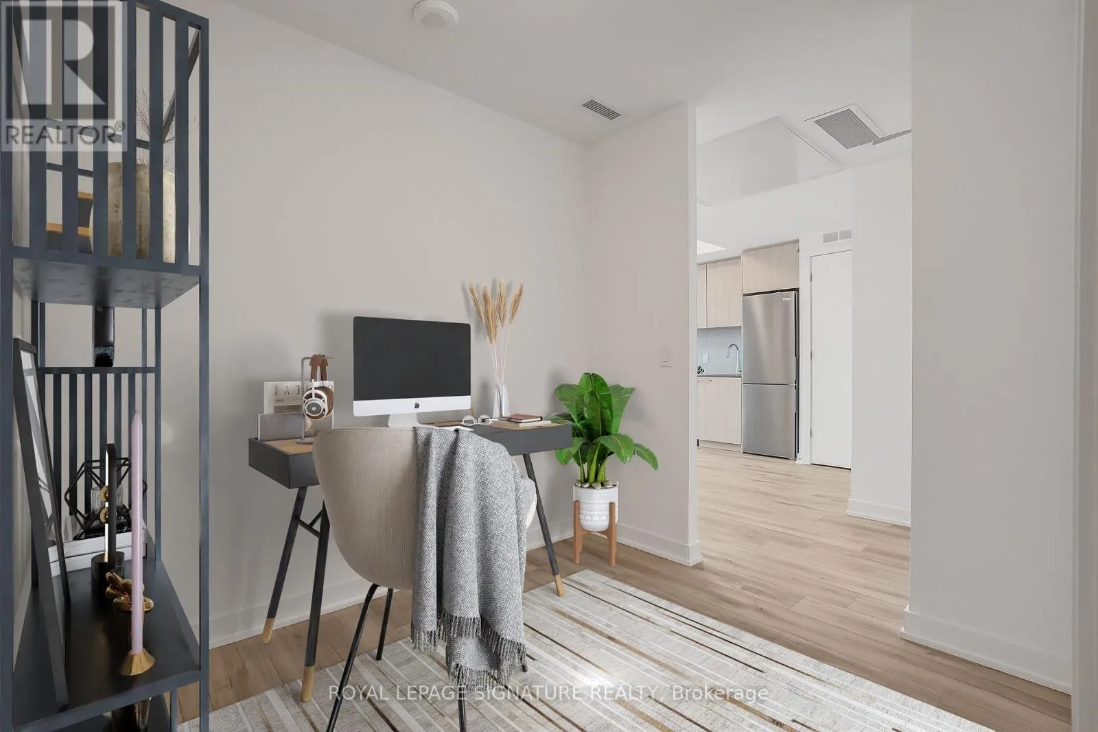 The Narrative Condos – Bright and modern 1 bedroom + den condo in the heart of Rouge. This thoughtfully designed suite features an open-concept living, dining, and kitchen area with wide plank laminate flooring and walk-out access to a private balcony. The contemporary kitchen is finished with a quartz countertop and brand-new stainless steel appliances. The bedroom offers a double
