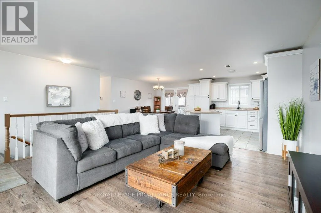 Welcome to this well-maintained and spacious home offering a versatile layout with 3 bedrooms on the main floor and 2 additional bedrooms plus a den on the lower level. The bright, open-concept main floor features a beautifully designed kitchen with crisp white cabinetry, stylish backsplash, under-valance lighting, pot lighting, and a large functional island, seamlessly flowing into the living and