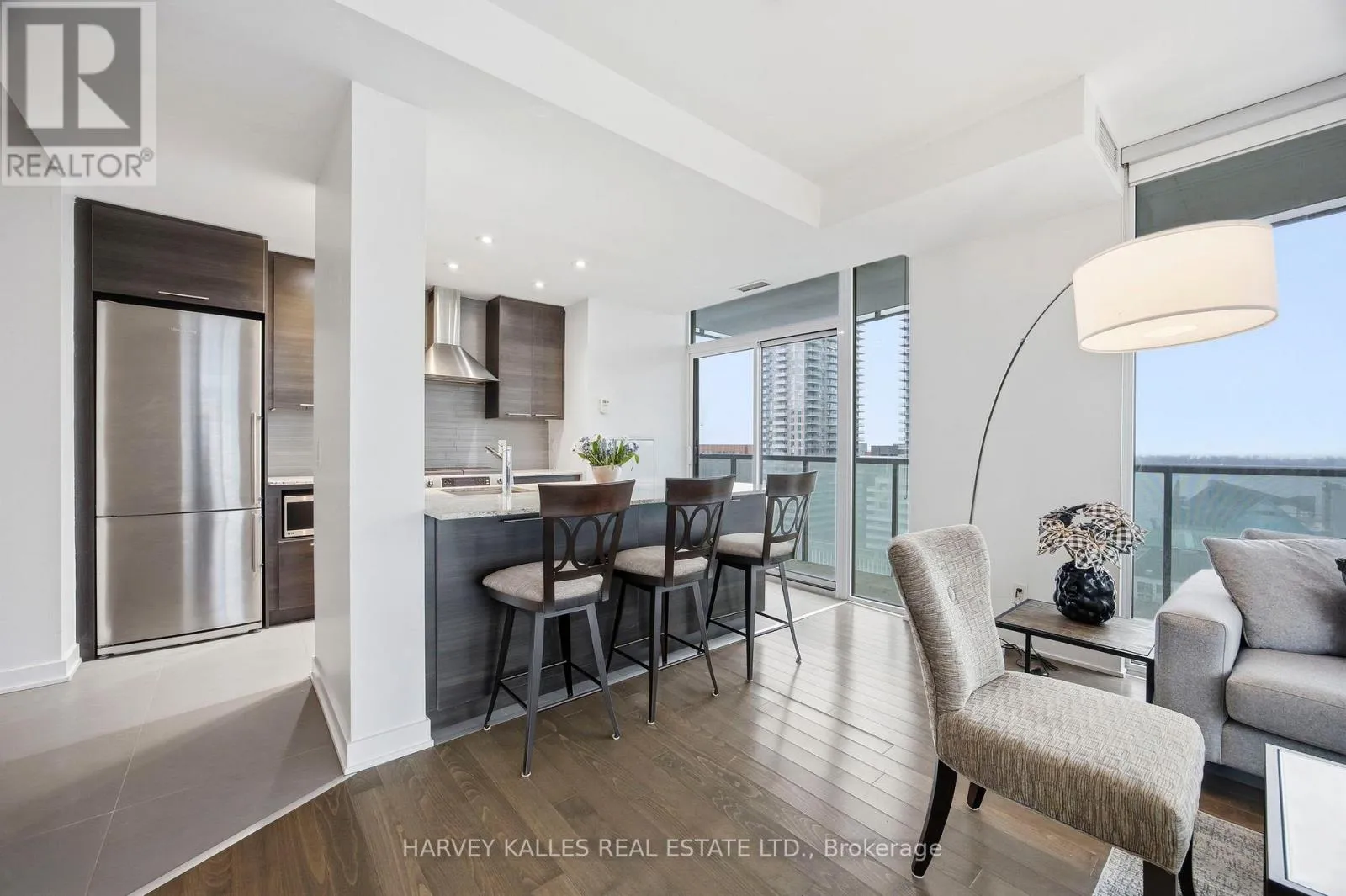 Furnished Short-Term Lease – Minimum 6 Months: Don’t miss this exceptional executive rental at Market Wharf, a premier address at 1 Market Street in the vibrant St. Lawrence Market District. This 1,039 square-foot, two-bedroom+ den, two-bath corner suite blends an open-concept design with large, light-filled interiors and panoramic city and water views from a southwest exposure. A versatile second bedroom,