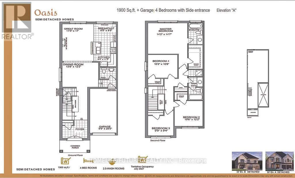 Separate Basement Entrance Completion Date July 2027** New Pre-Construction! Stunning 1,900 Sq. Ft. Semi-Detached Home Featuring 4 Bedrooms And 3 Bathrooms With A Grand Double Door Entry. Spacious Primary Bedroom With Ensuite And Walk-In Closet, Plus Convenient Second-Floor Laundry.Brand New Home In A Beautiful, Mature (King St) Neighbourhood With Easy Access To Hwy 401. Upgrades Included Directly From The Builder.