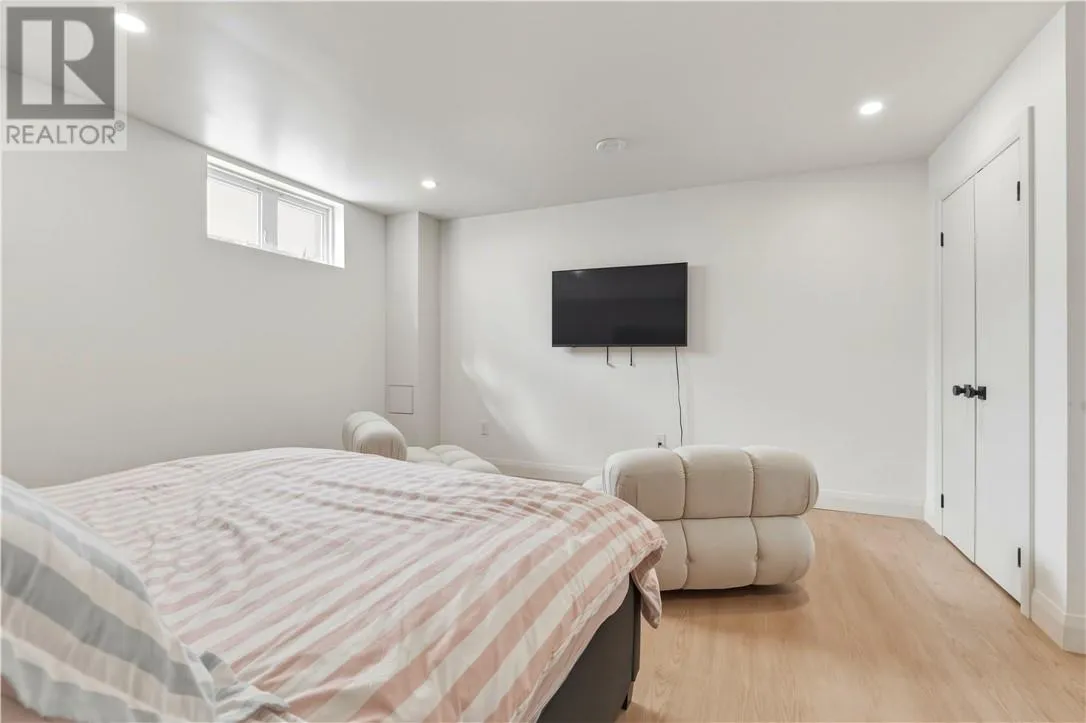 Located in a mature, tree-lined neighborhood, 3182 Leo is a stunning, solid brick bungalow offering 4 spacious bedrooms, 2 bathrooms, and an exquisitely appointed interior. The main floor welcomes you with light-filled living spaces featuring blonde hardwood-style flooring, a chic fluted fireplace surround with an integrated TV mount, and sleek modern lighting. This opens effortlessly into a defined dining area