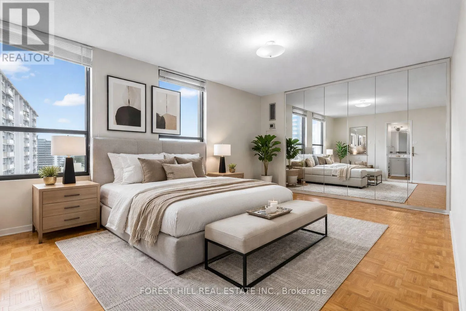 Welcome to this rarely offered, exceptionally spacious three-bedroom corner suite, offering approximately 1,461 sq. ft. of beautifully maintained living space, plus a 119 sq. ft. balcony. Immaculately kept and freshly painted. Enjoy stunning panoramic views from every angle-north-facing vistas from the dining room, west-facing outlooks from the kitchen and two bedrooms, and peaceful southern exposure from the primary suite, filling