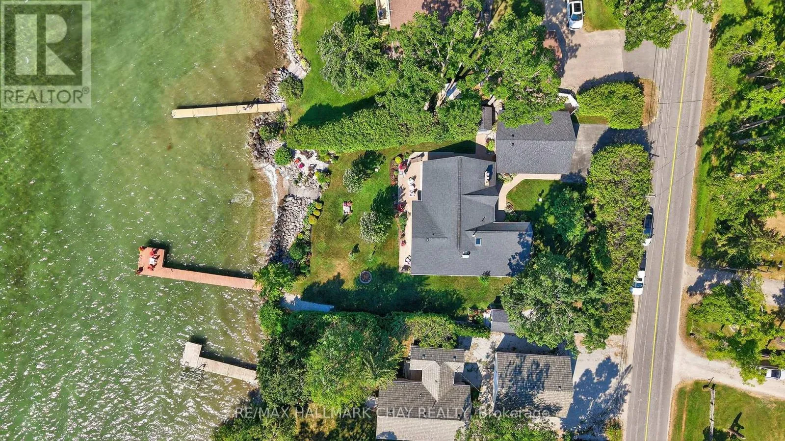 One hundred feet of level shoreline along the South-facing shores of Lake Simcoe. This exceptional property offers a truly picturesque, private, park-like setting. The thoughtfully enhanced waterfront showcases beautiful granite stonework, complete with elegant stairs and a reinforced shoreline-perfectly designed for both beauty and function. Unwind or entertain on the stunning waterside stone patio while taking in serene, panoramic