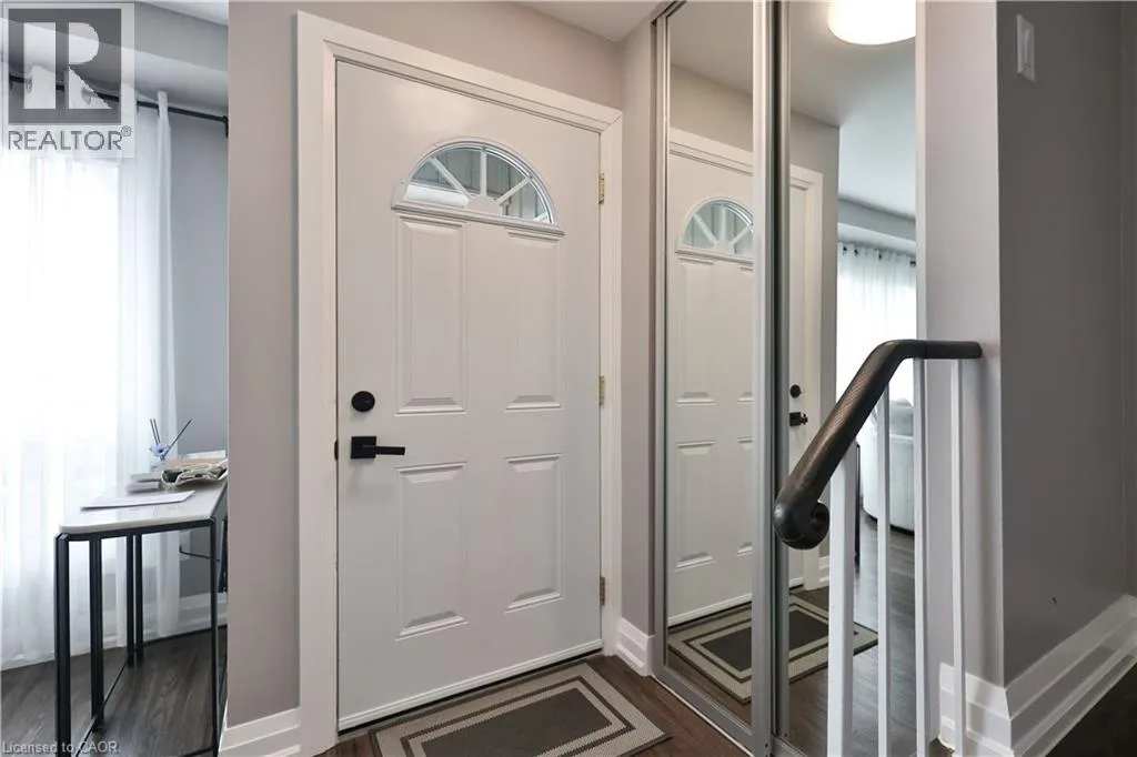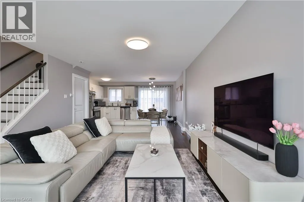 to a private rear garden backing onto green space, offering a quiet setting well removed from Upper Middle Road. The updated kitchen features shaker style cabinetry, stainless steel appliances, subway tile backsplash and ample counter space, directly connected to the dining area for everyday ease. The living room is notably wide and well proportioned, with a large front window that fills the space with natural light and reinforces the open feel of the home. Updated flooring, trim and interior doors add to the clean, cohesive finish throughout. Upstairs, three well sized bedrooms offer comfortable accommodation for families, guests or a home office, including a spacious primary bedroom with excellent proportions, complemented by an updated main bathroom. The finished lower level adds meaningful additional living space with a large recreation room, a renovated 3 piece bathroom, laundry and storage. A significant upgrade includes conversion from electric baseboard heating to gas forced air with central air conditioning, along with updated windows, providing improved comfort and efficiency throughout the year. One covered parking space under carport plus ample visitor parking. Quiet, predominantly owner occupied complex within walking distance to schools, parks, trails, Sheridan College, shopping and transit, with easy access to major highways. A move in ready home offering exceptional space, upgrades and overall livability. (id:62650)