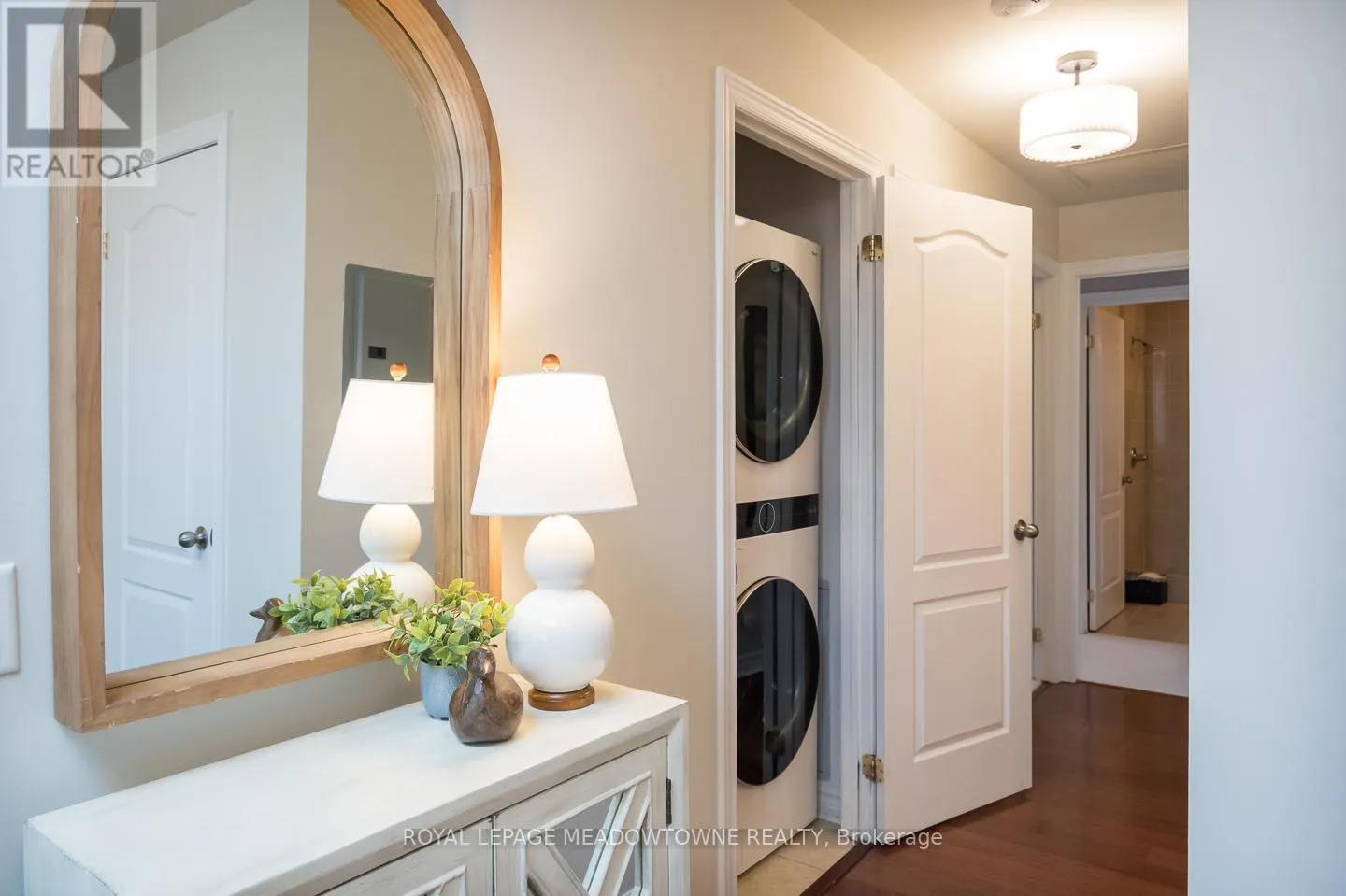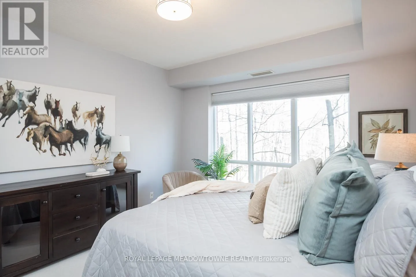 Welcome to this stunning corner unit in the prestigious Woods End Condominiums, ideally located in the sought-after Hurontario neighbourhood of Mississauga. Offering approximately 1200 sq ft of thoughtfully designed living space, this bright and spacious 2-bedroom, 2-bathroom condo showcases beautiful views of the surrounding wooded greenspace. The modern eat-in kitchen features a breakfast bar island, stainless steel appliances, tile backsplash,
