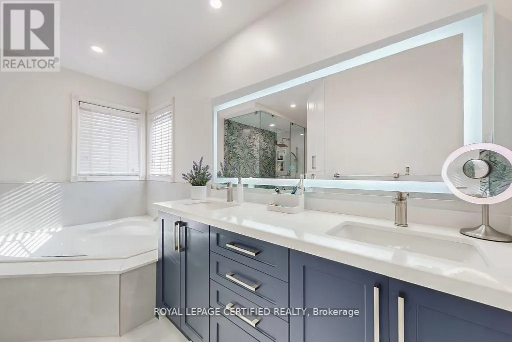 A prestigious subdivision with only two entry points, this rare corner estate offers exceptional privacy, architectural presence, and around 3400 sq. ft. of refined, designer-upgraded living space. Situated on a premium lot (almost 50’x105′) with three distinct outdoor living areas, the professionally landscaped grounds – enhanced with elegant patterned concrete and a full sprinkler system – create a private outdoor