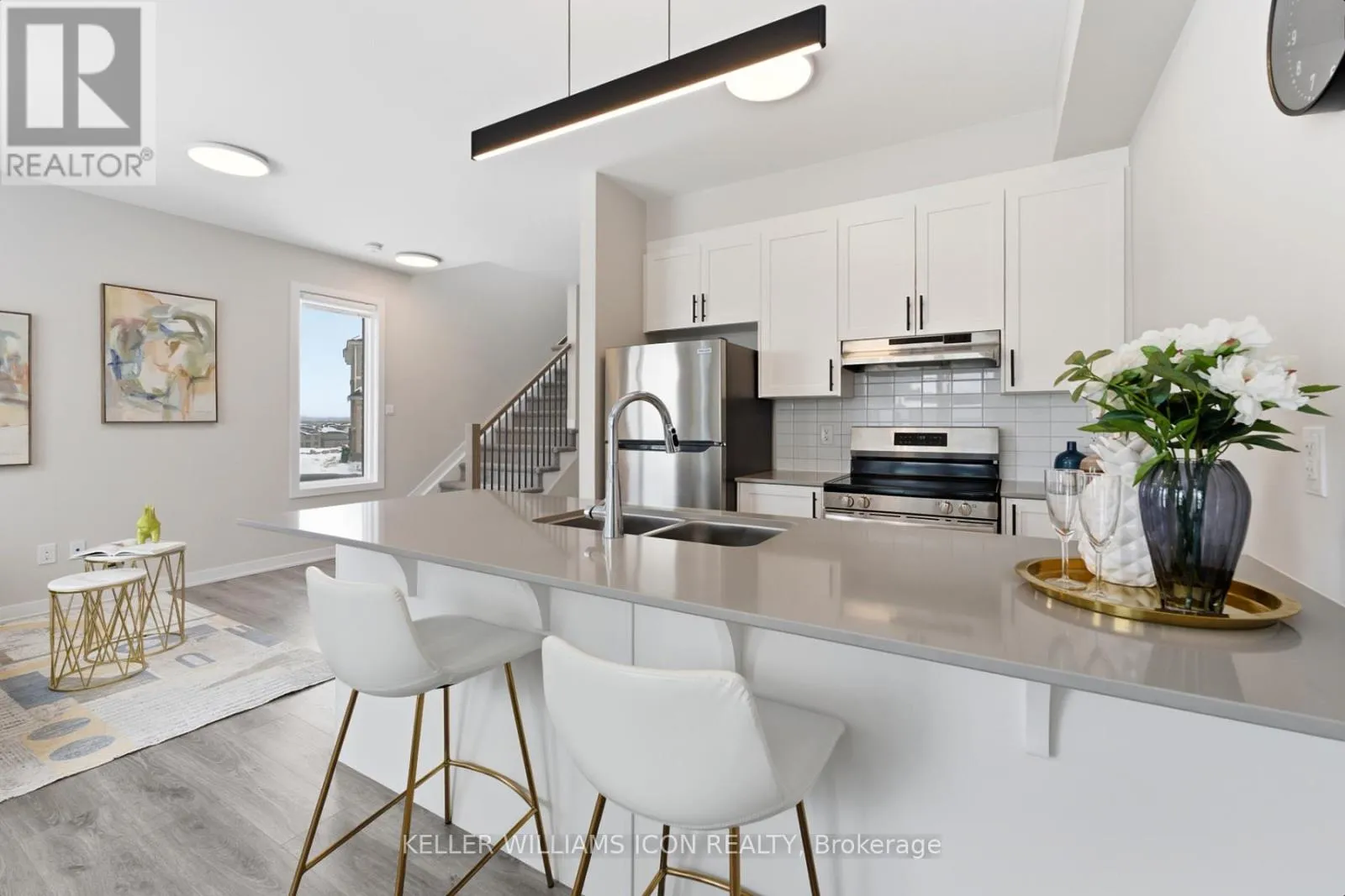 Welcome to this rare end-unit freehold townhome (built in 2025) in Half Moon Bay, Barrhaven. The main level features an open-concept living and dining area with a bright kitchen, a flush breakfast bar, and a convenient powder room, ideal for both everyday living and entertaining. With a southwest-facing backyard, sunlight fills the living room all afternoon, perfect for slow mornings