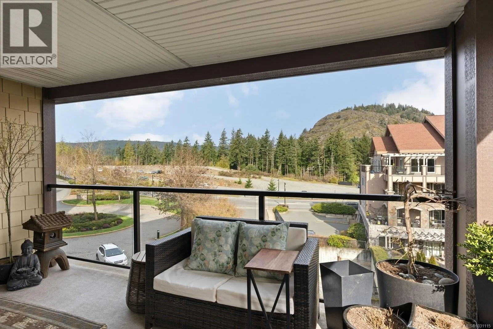 Welcome to St. Andrews Walk at Bear Mountain, an inviting corner residence offering a bright, functional, and spacious layout. This 2 bed plus den, 2 bath home captures elevated views over a natural pond, the 9th fairway, and Mt. Finlayson. Thoughtfully designed with 9’ ceilings, engineered wood floors, a cozy fireplace, and large windows that fill the home with natural