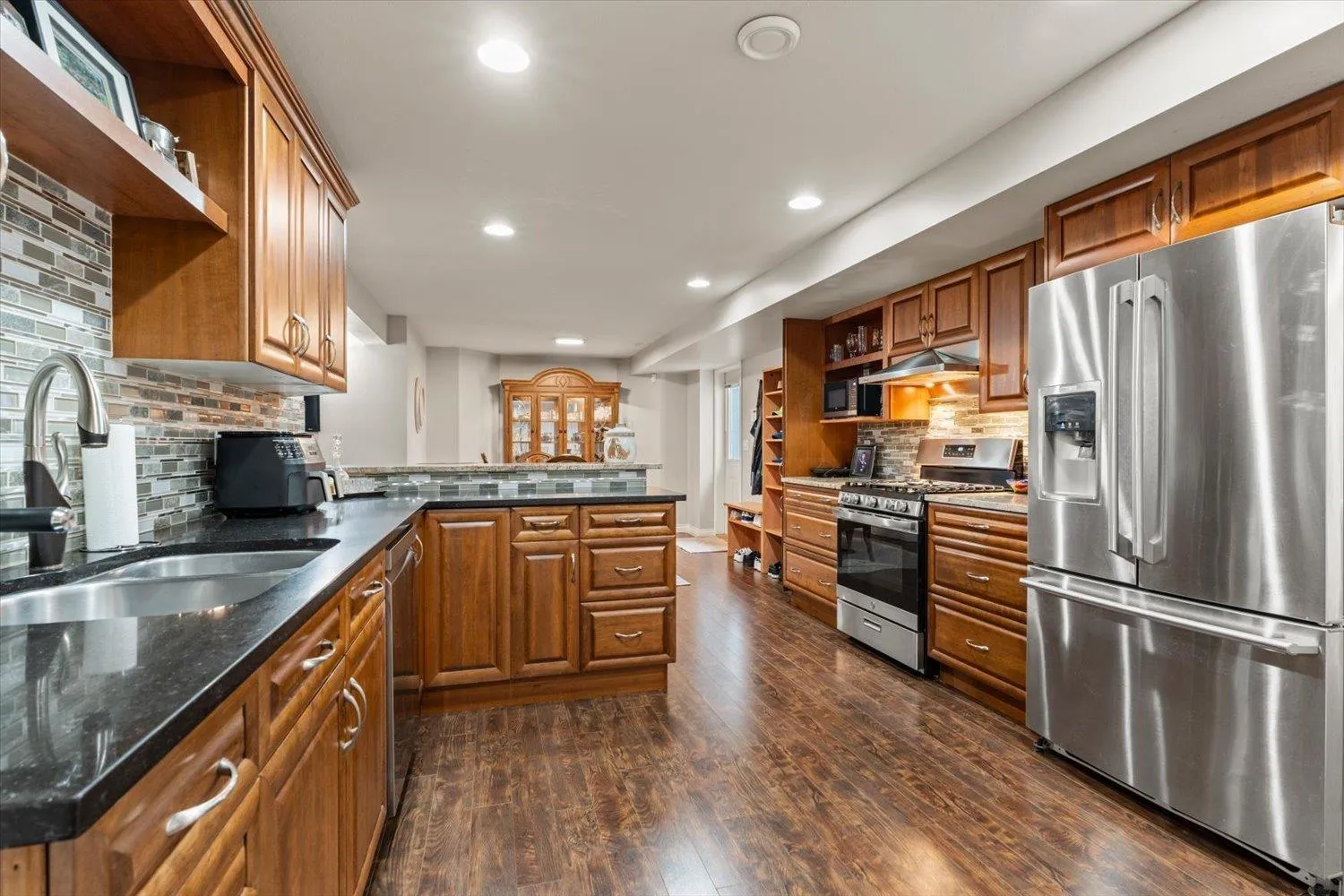 Experience refinement and versatility in this beautifully maintained family home. Thoughtfully upgraded throughout, it features A/C with 3 heat pumps, new roof w/ a 50-year warranty, and a built-in generator for ultimate peace of mind. The main floor features an expansive primary bedroom w/ tastefully updated ensuite & accessible shower. The kitchen is both stylish and functional, complete with sleek